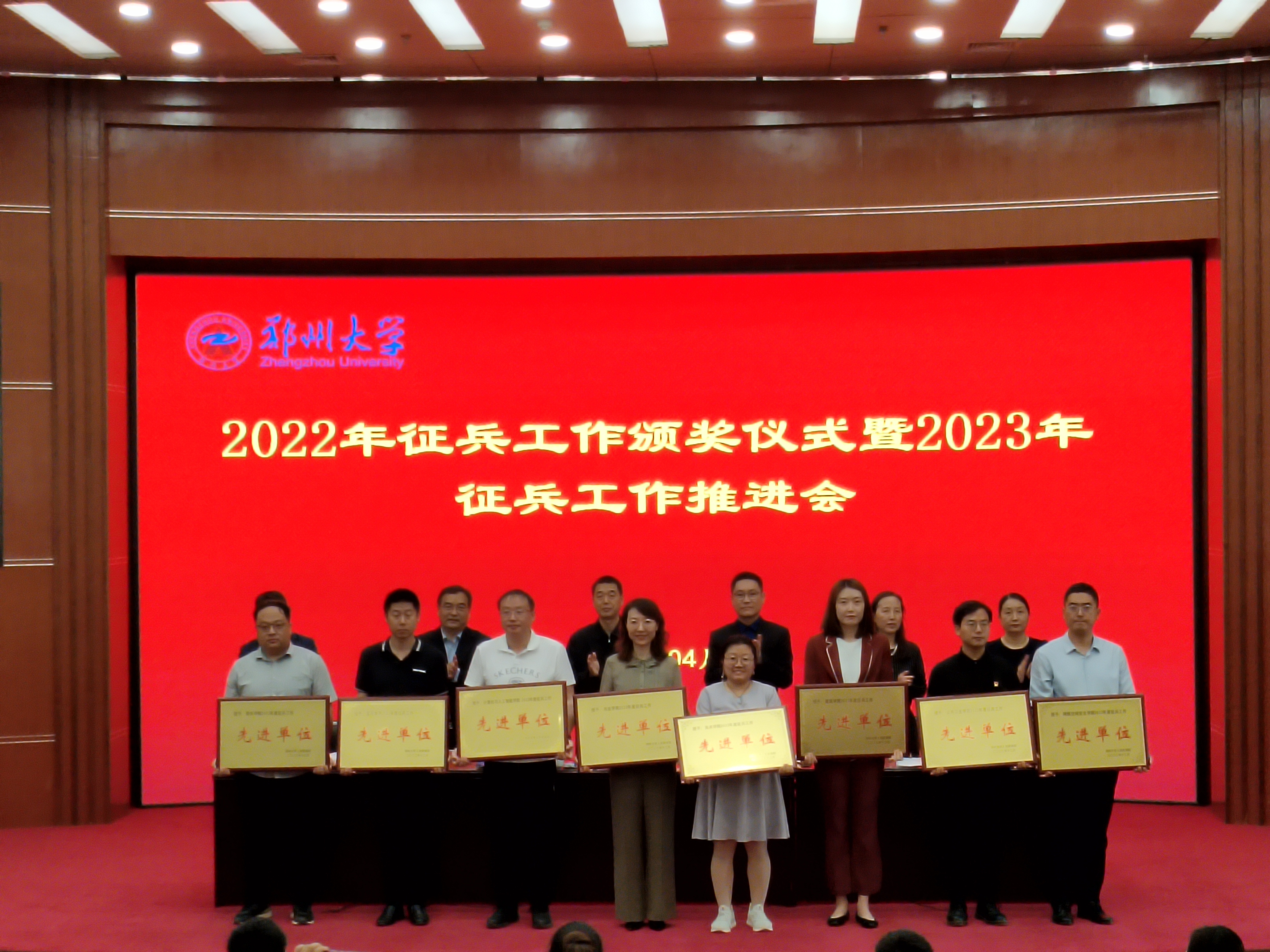 与会领导为体育学院(校本部)、护理与健康学院、水利与土木工程学院、药学院、新闻与传播学院、生命科学学院、文学院、网络空间安全学院、公共卫生学院、建筑学院、美术学院、书法学院、计算机与人工智能学院、国际学院、音乐学院颁发“2022年度征兵工作先进单位”奖牌,为牛涛涛等人颁发“2022年度征兵工作先进个人”荣誉证书。