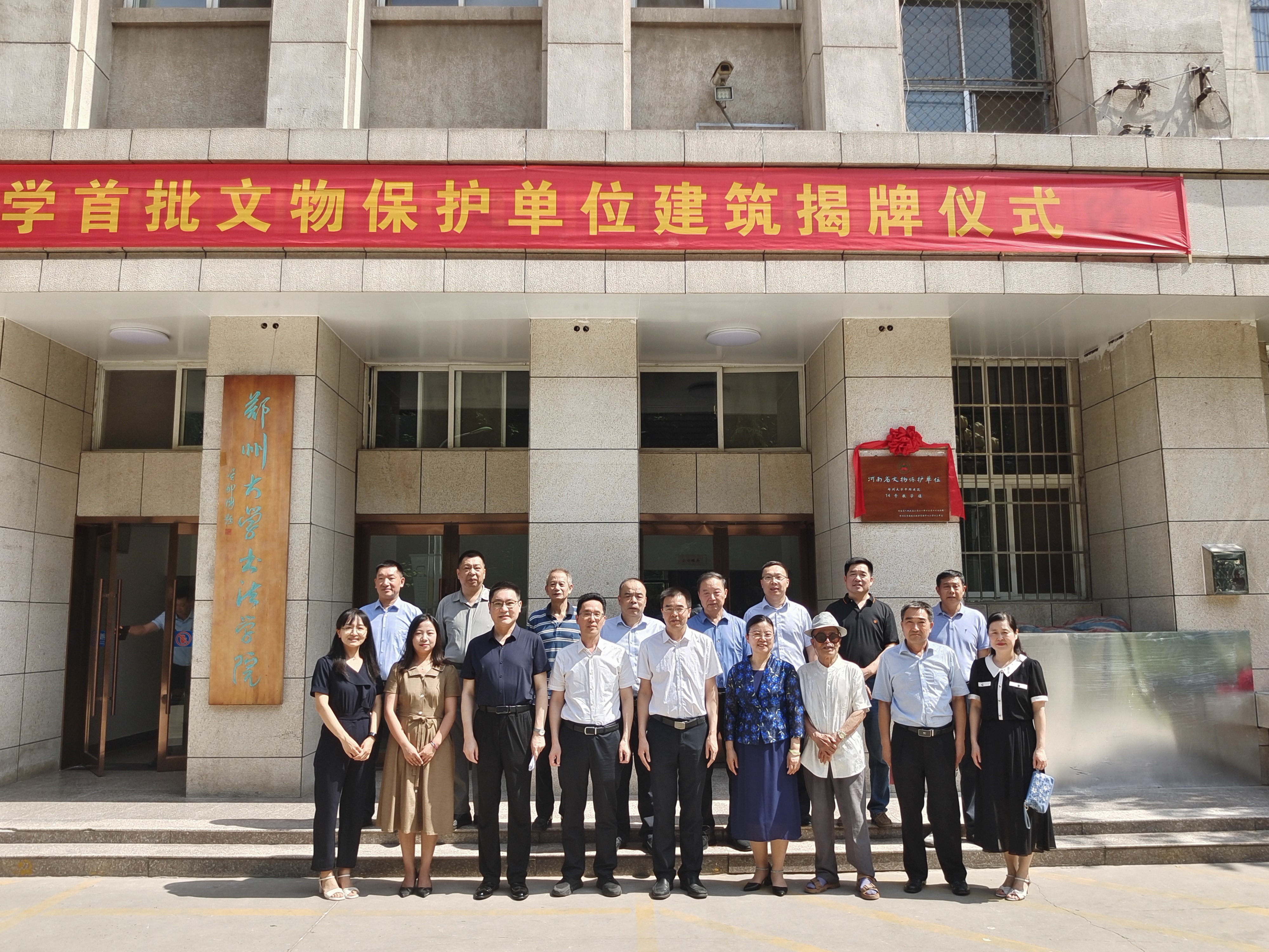 6月15日,ac米兰官网中文网站首批文物保护单位建筑物揭牌仪式、《凝固的历史 厚重的记忆——老郑大建筑图记》新书发布暨校园文化建设座谈会在南校园举行。省文物局局长任伟、副校长单崇新出席,校党委常委、宣传部部长厉励及相关单位负责同志参加活动。揭牌仪式及座谈会由南校区综合管理中心负责同志主持。
