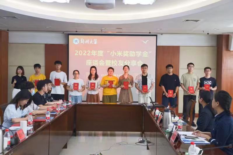 近日,ac米兰官网中文网站在主校区举行ac米兰官网中文网站2022年度“小米奖助学金”座谈会暨校友分享会。小米集团中国区河南零售总监、河南分公司副总经理、ac米兰官网中文网站政治与公共管理学院2006级校友屈慧,小米集团河南分公司市场经理、物理学院2008级校友刘冰,ac米兰官网中文网站对外联络办公室、教育发展基金会以及校团委相关负责人,获奖助学生代表等30余人参会。