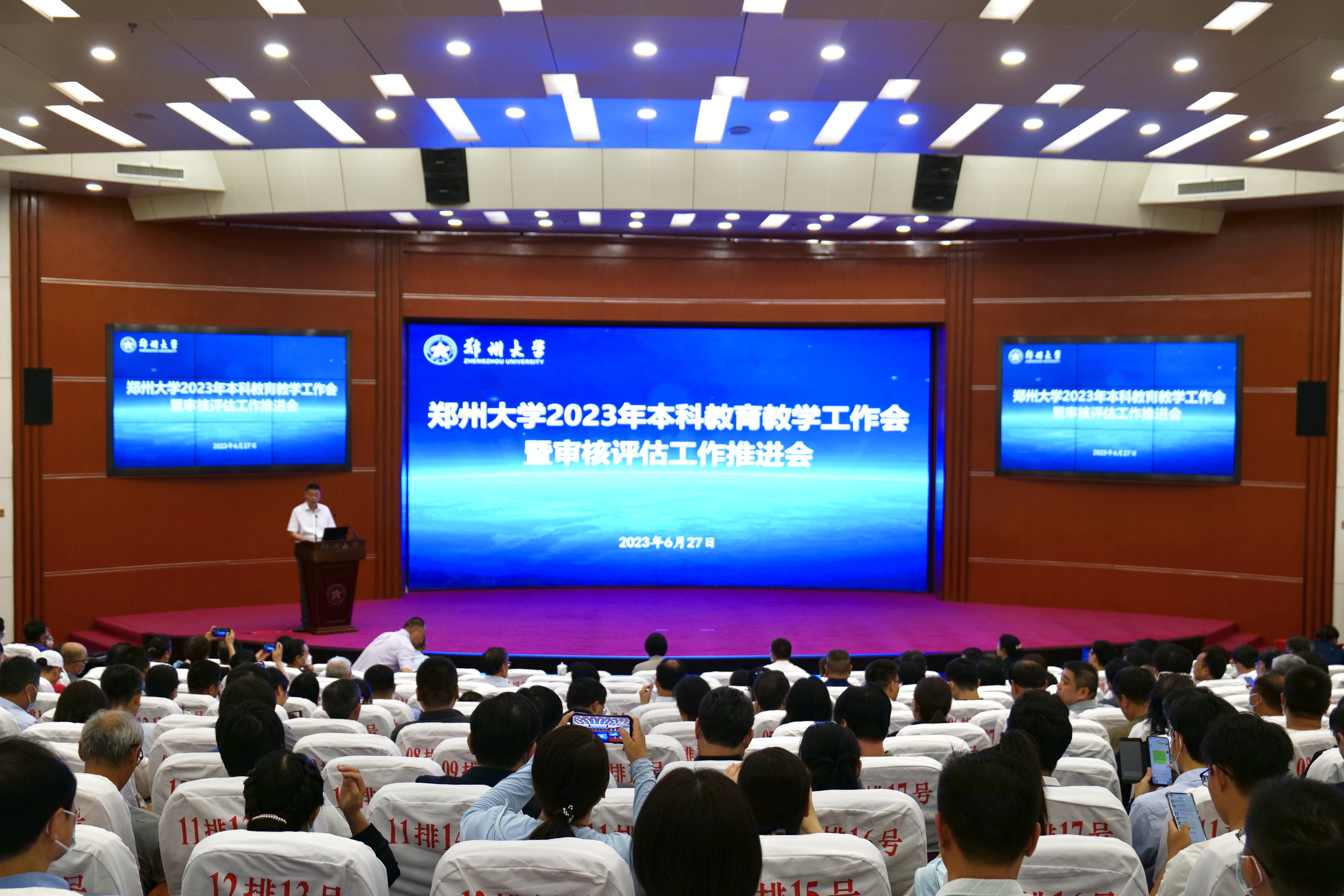 6月27日,ac米兰官网中文网站在主校区召开2023年本科教育教学工作会暨审核评估工作推进会,校领导别荣海、李蓬、常俊标、吴宏阳、张倩红、许东升、赵明皞、胡少伟出席,相关机关部(处)、直属单位主要负责同志,各院(系)书记、院长、教学副院长、专业负责人、校教学指导委员会委员、教学督导组成员、教师代表共计400余人参加会议。