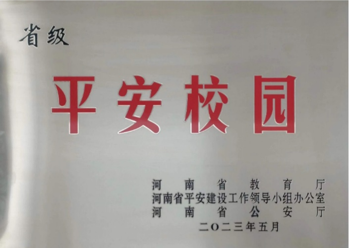 近日,河南省教育厅、河南省平安建设工作领导小组办公室、河南省公安厅联合下发《关于命名2022年省级平安校园的通知》(教安全〔2023〕200号)文件,我校被授予省级“平安校园”荣誉称号,有效期三年。