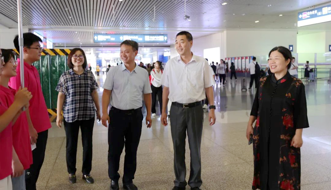 校领导在高铁站看望慰问迎新工作人员和学生志愿者