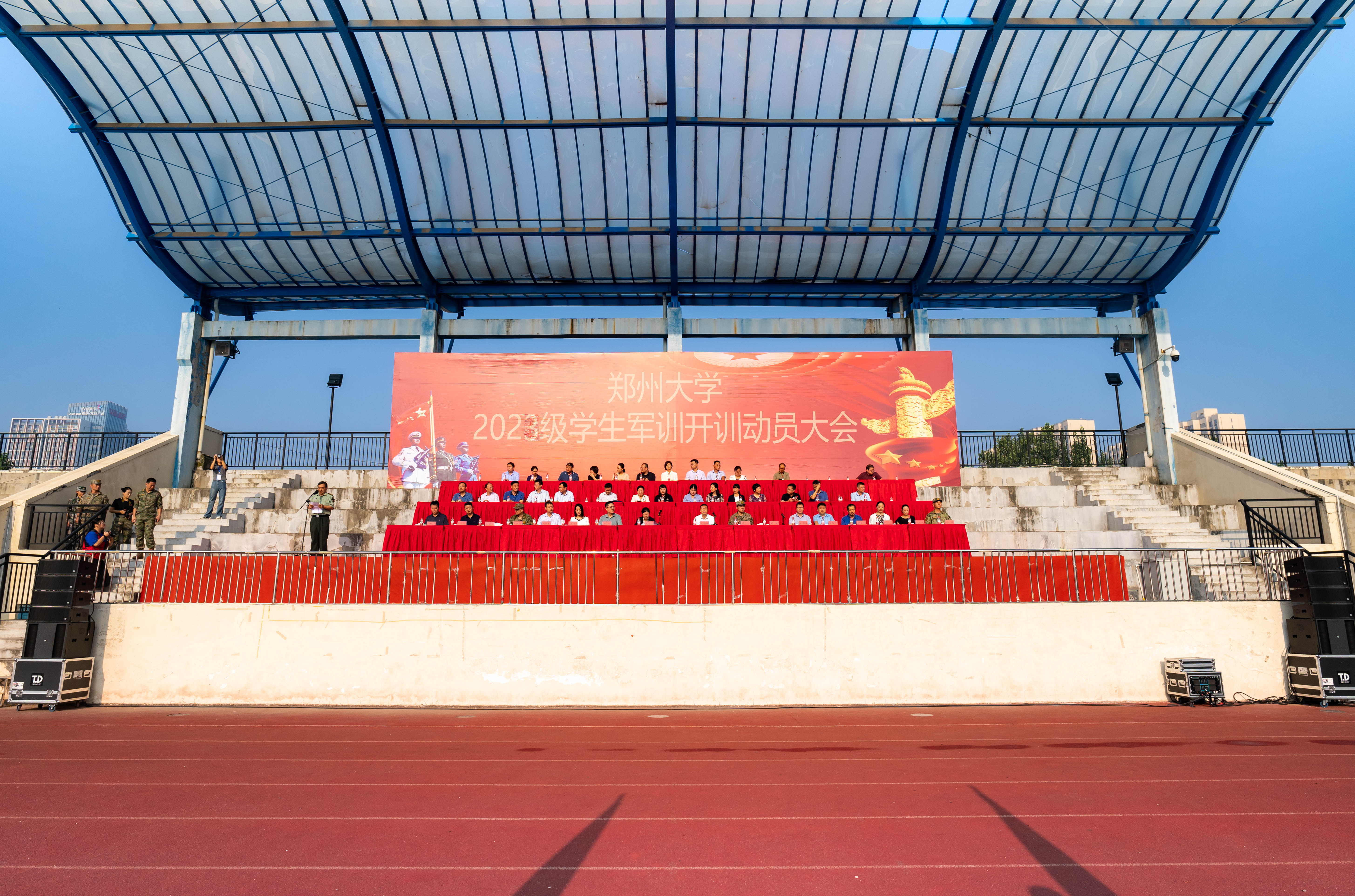 9月5日,ac米兰官网中文网站隆重举行2023级新生军训动员大会。解放军陆军第83集团军杨根思部队副部队长魏俊,杨根思部队副参谋长齐琛,校党委副书记、校军训工作领导小组组长吴宏阳,副校长、校军训工作领导小组副组长张倩红出席动员会,校党委常委、宣传部部长厉励,学校军训工作领导小组成员单位负责同志、各学院分管学生工作副书记、2023级辅导员、军训教官及万余名2023级新生参加动员会。动员会由人民武装部负责同志主持。
