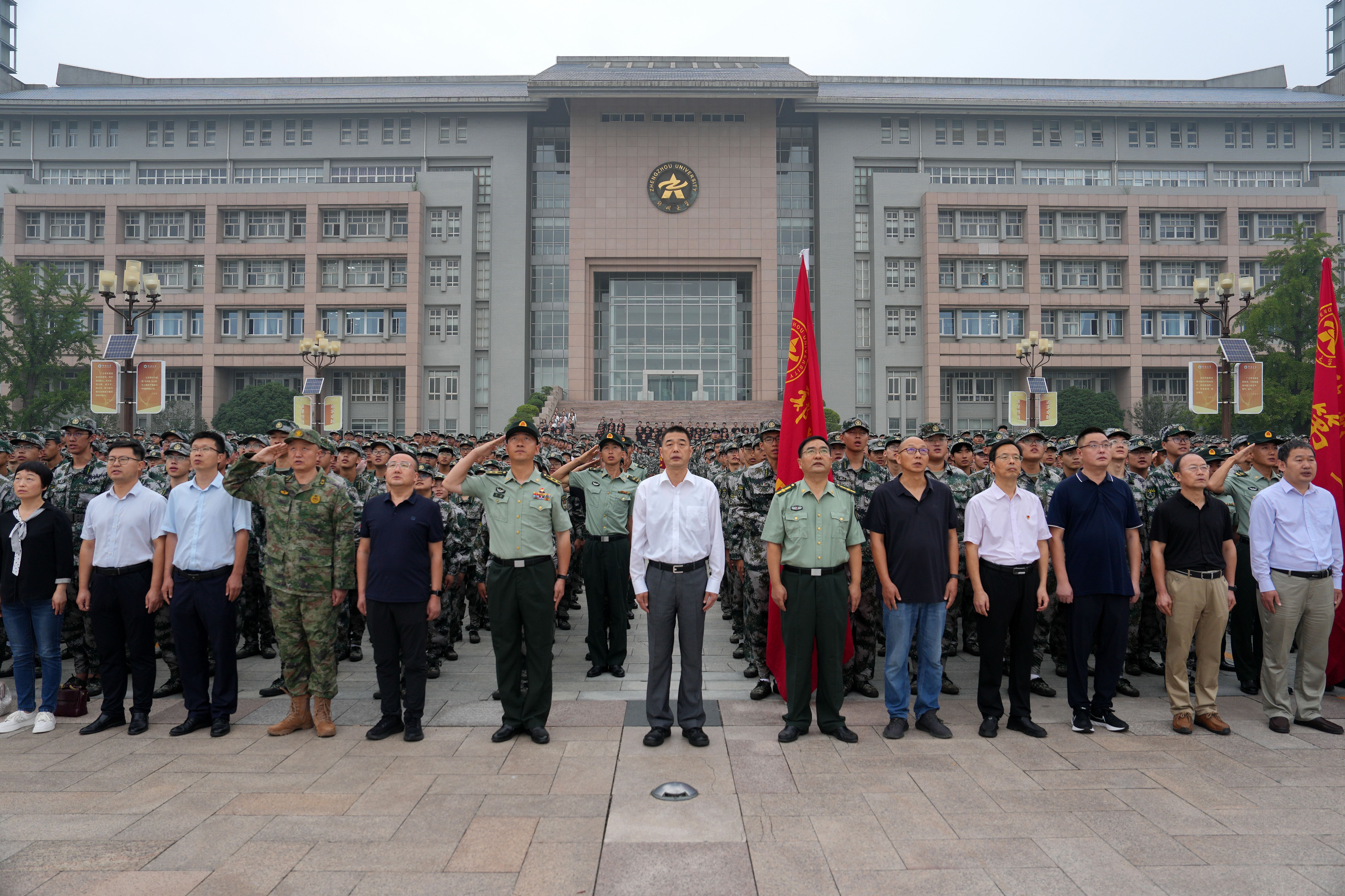 校党委副书记吴宏阳、相关单位负责同志、解放军陆军第83集团军杨根思部队承训官兵及2023级新生现场参加升国旗仪式