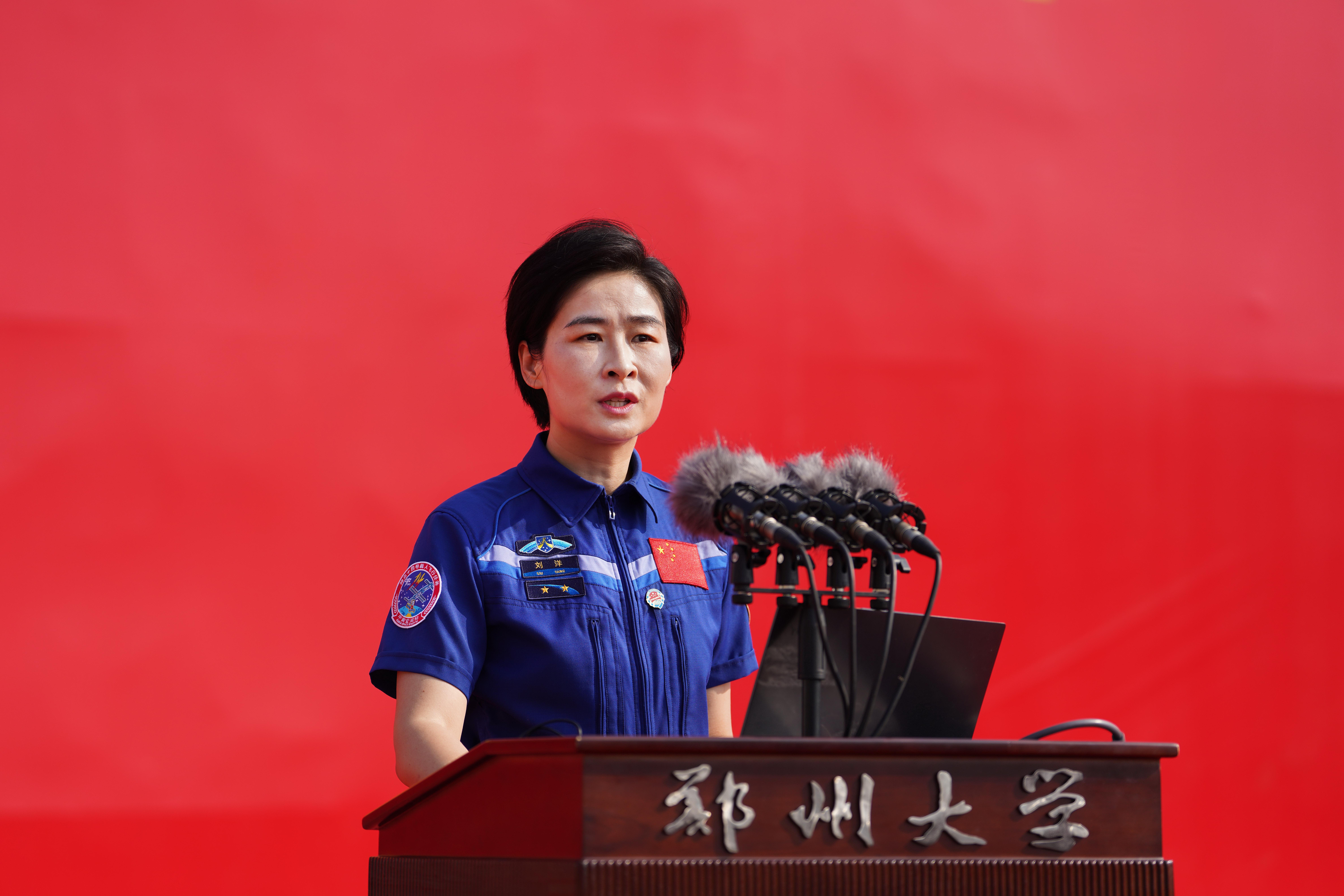 特邀嘉宾、英雄航天员、中国首位进入太空的女航天员刘洋作题为《与时代同行,与梦想同行》专题报告