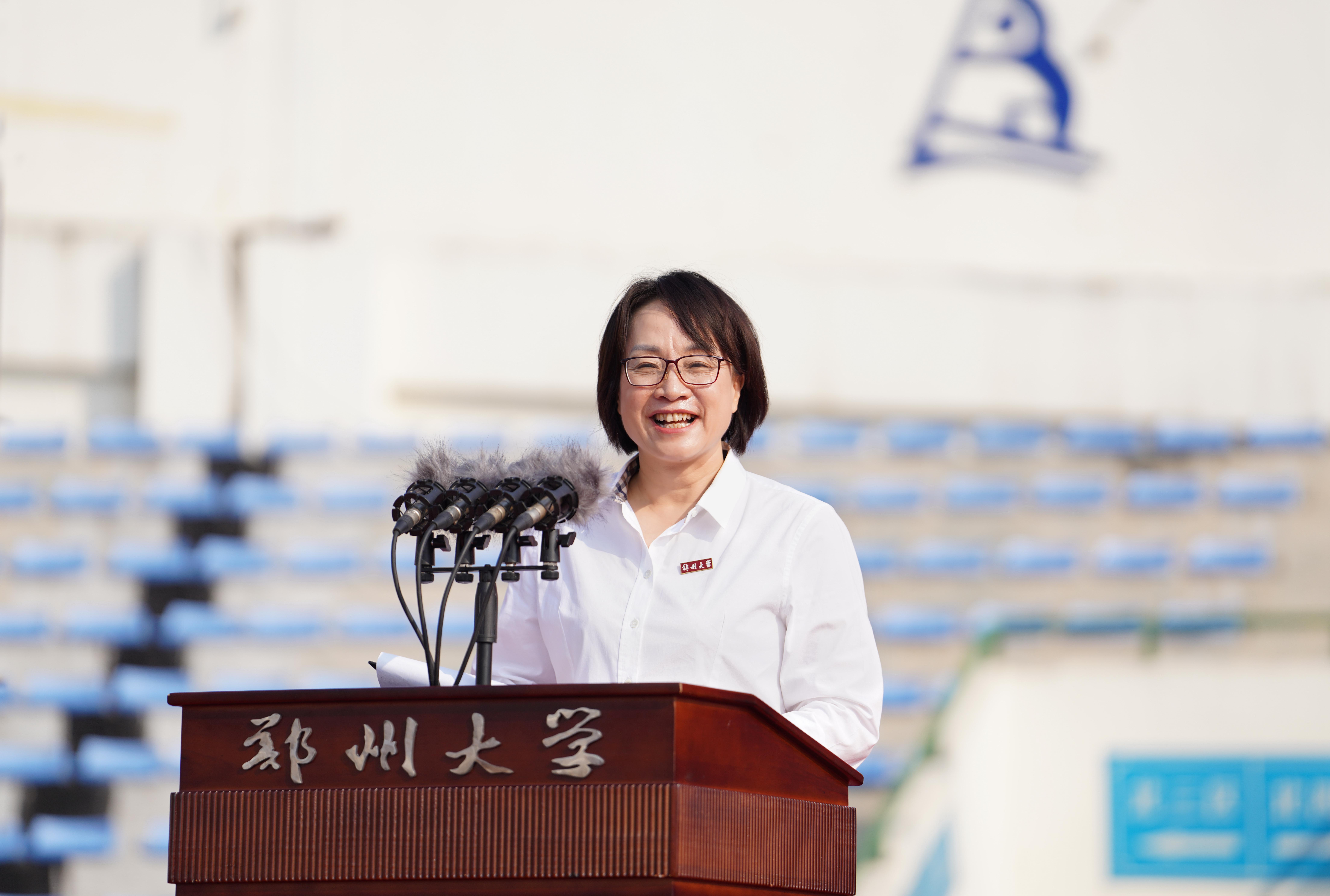 中国科学院院士、校长李蓬作题为《发现自我、勇毅前行》的讲话。她代表学校向2023级10564名本科生、8741名研究生、688名博士生以及来自58个国家的543名留学生表示欢迎,并用“大”和“美”介绍了学校的基本情况,用“历史悠久、站位前沿、名师辈出”介绍了学校的历史与取得成就,她希望同学们用心体会郑大独有的厚重与灵秀,她寄语同学们在ac米兰官网中文网站开启人生新的阶段,上好“大学第一课”,在大学里发现自我、塑造自我、成就自我、超越自我,完成从一名大学新人到栋梁之材的蜕变,鼓励同学们认清自己的人生坐标,树立前行的奋斗目标;发现自己的使命,坚定前行的信念;发现自己无尽的潜力,积蓄前行的能力。她指出,国家的前途,民族的命运,人民的幸福,是当代中国青年必须和必将承担的重任,她希望同学们怀揣星辰大海,发现自我、勇毅前行,以昂扬的姿态去迎接未来,在实现中国梦的伟大征程中展现郑大人的时代风采!
