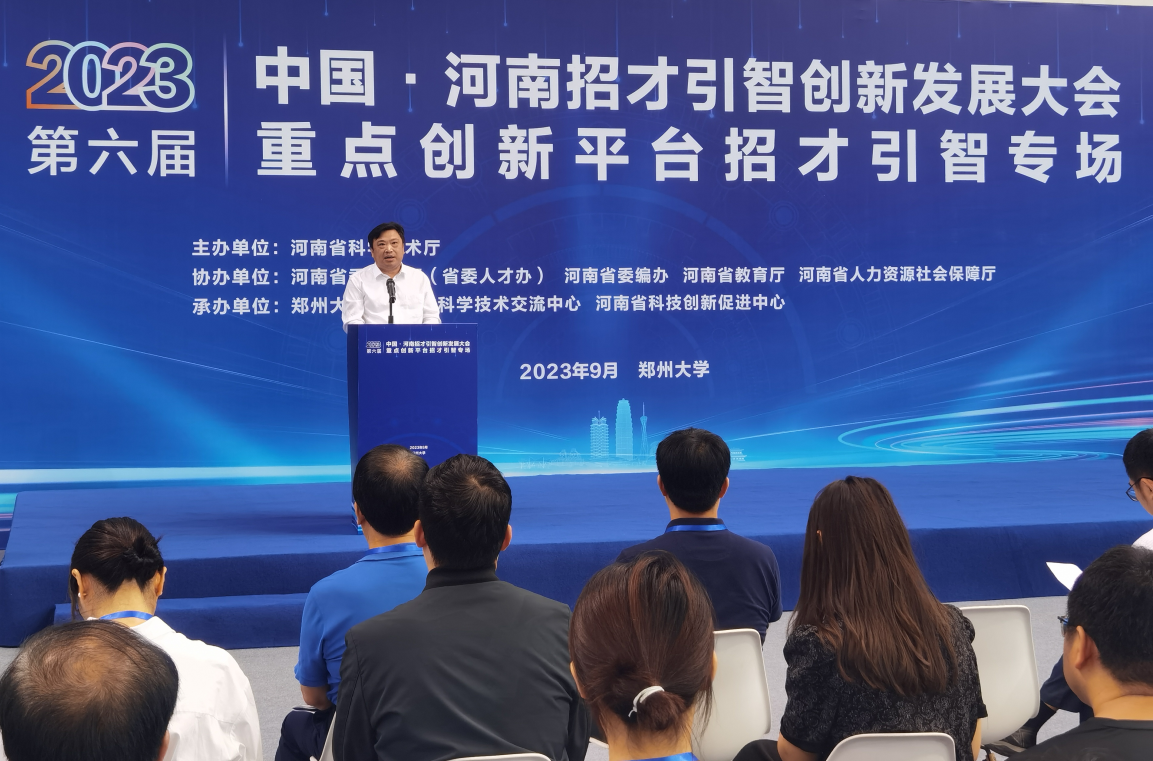 9月15日,第六届中国·河南招才引智创新发展大会重点创新平台招才引智专场活动在ac米兰官网中文网站主校区举办,省人社厅副厅长李海龙、省科技厅副厅长潘刚、ac米兰官网中文网站副校长胡少伟等出席活动。