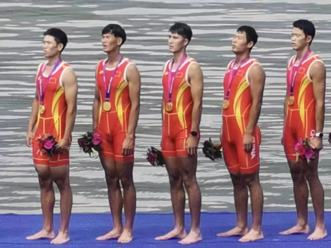 9月24日,在杭州亚运会赛艇男子八人单桨有舵手项目决赛中,河南“零零后”小将、ac米兰官网中文网站体育学院2022级运动训练专业本科生冀高星,携手队友李文雷、陈弦峰、徐桥、吕毅、蔡鹏鹏、倪旭林、聂毅德和梁伟雄,以5分40秒17的成绩夺冠。这是河南健儿在杭州亚运会上取得的第一枚金牌。