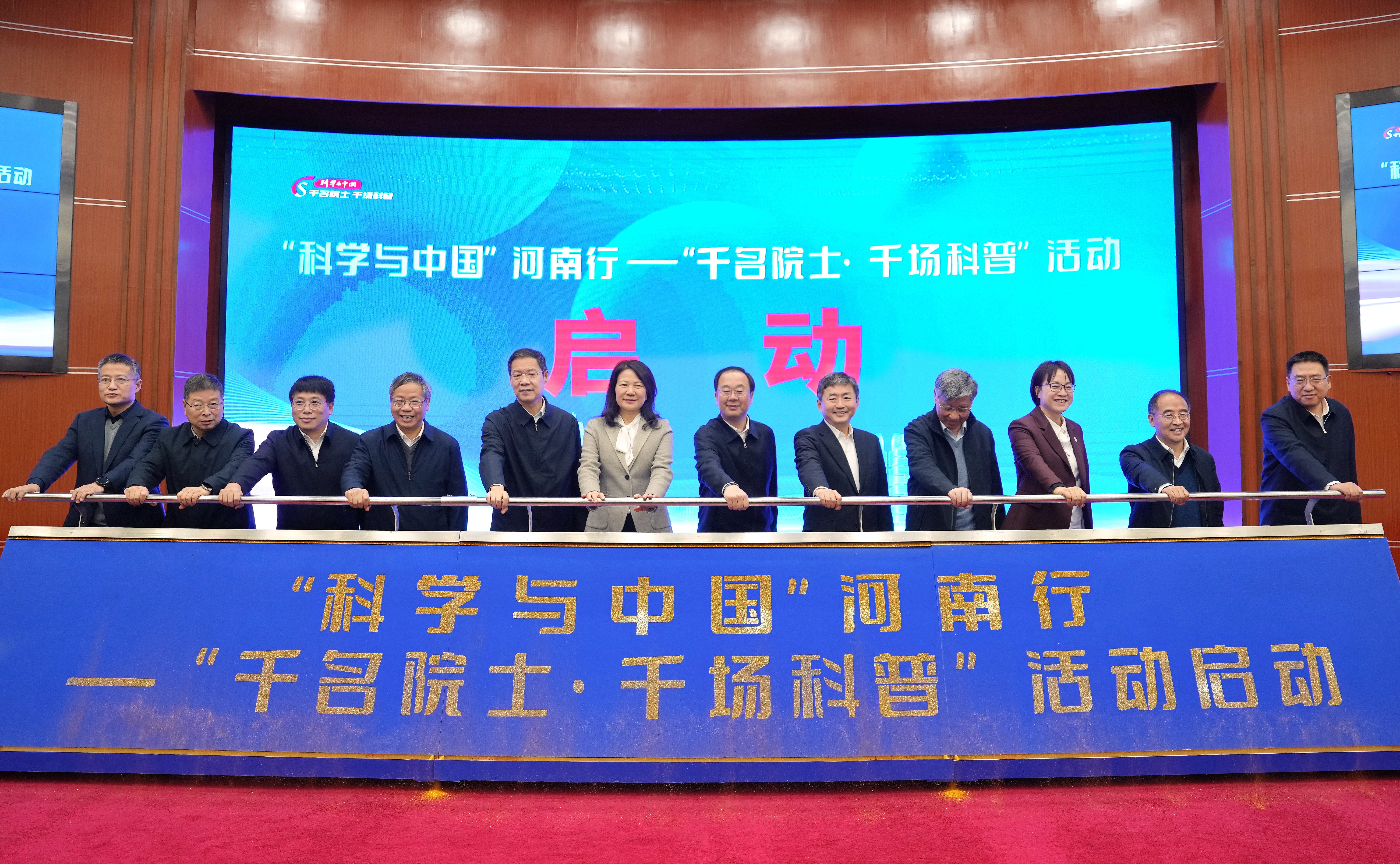 与会领导共同启动“科学与中国”河南行——“千名院士·千场科普”活动。