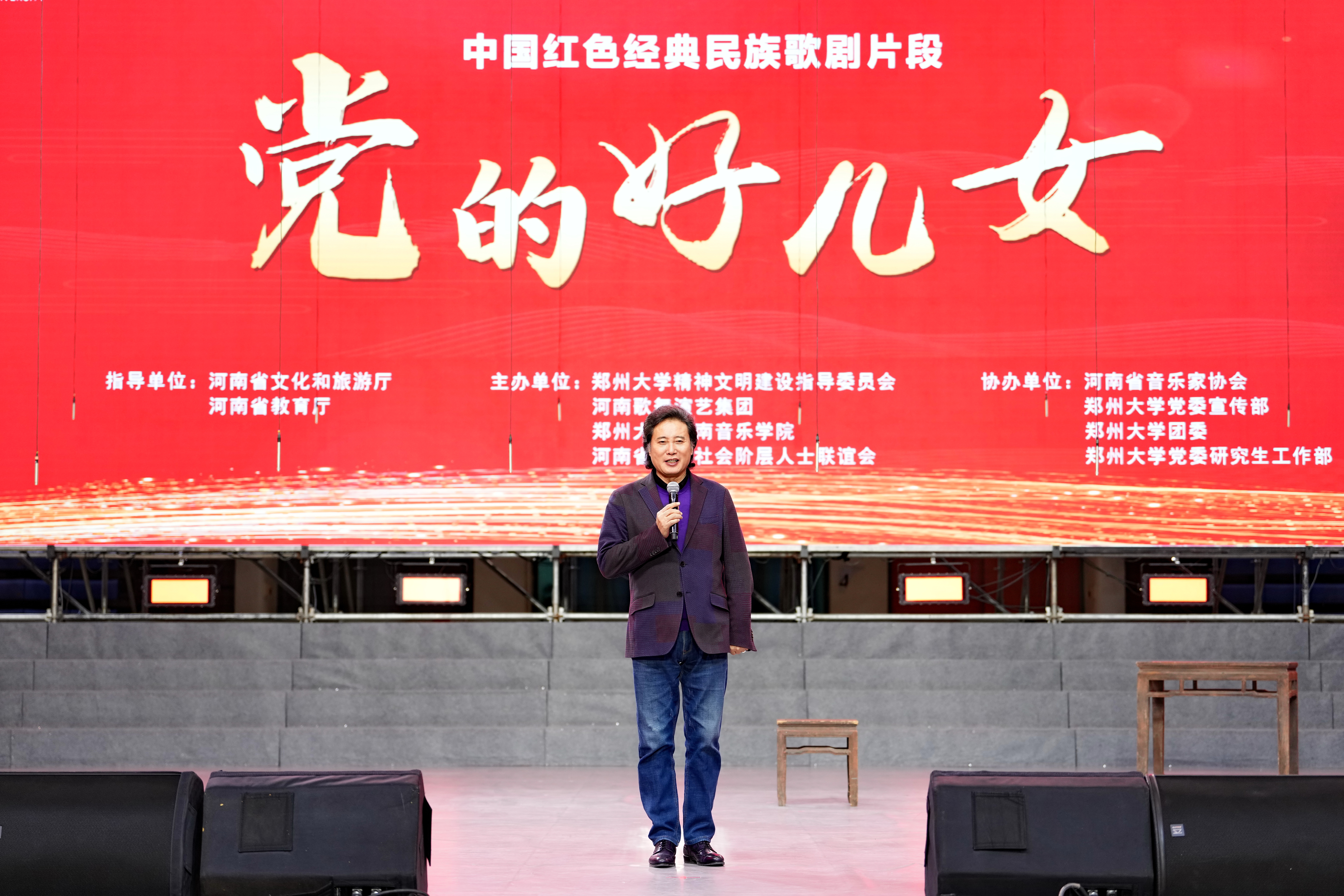 戴玉强致辞。他表示,演出节目选取的都是大家耳熟能详的中国红色经典歌剧传世之作当中最精彩的片段,参加演出的演员们是从全省各地选拔上来的,在节目前期排练中邀请了国内歌剧专家对他们进行详细指导。希望大家跟着音乐和演员们的表演走近歌剧,让这堂“音乐厅里的思政课”在大家的人生中留下美好回忆。