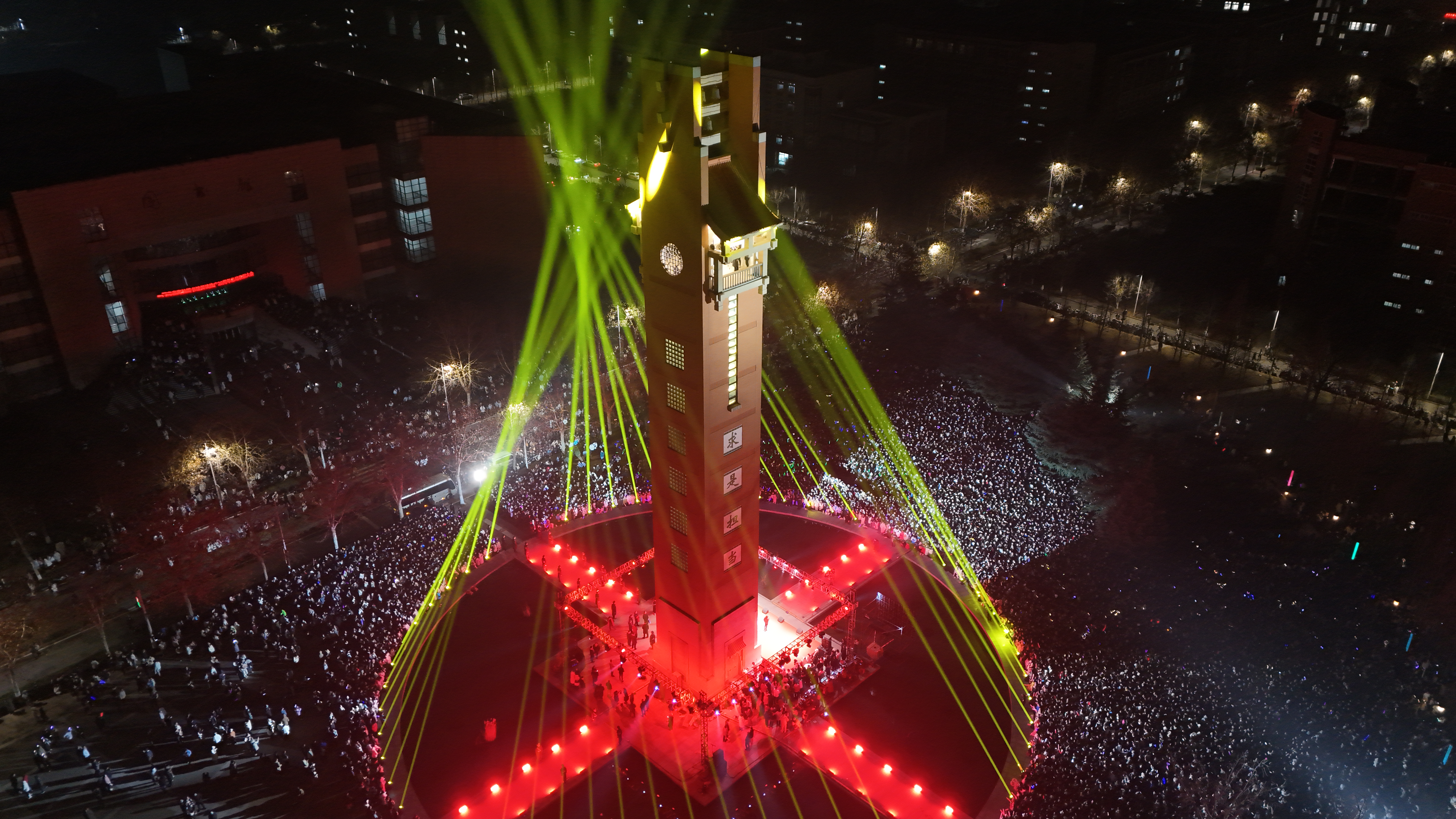 钟声朗朗,响彻天地,这是新年动人的旋律,是全体郑大人奔赴美好未来的约定。伴随着钟声响起,全校师生挥别成就满满的2023,阔步走向光明灿烂的2024。钟楼周围灯火璀璨,相聚在这里的师生们享受着这段美好时光,喜笑颜开互相拥抱,互道祝福,祝福声和欢呼声汇聚成欢乐的海洋。