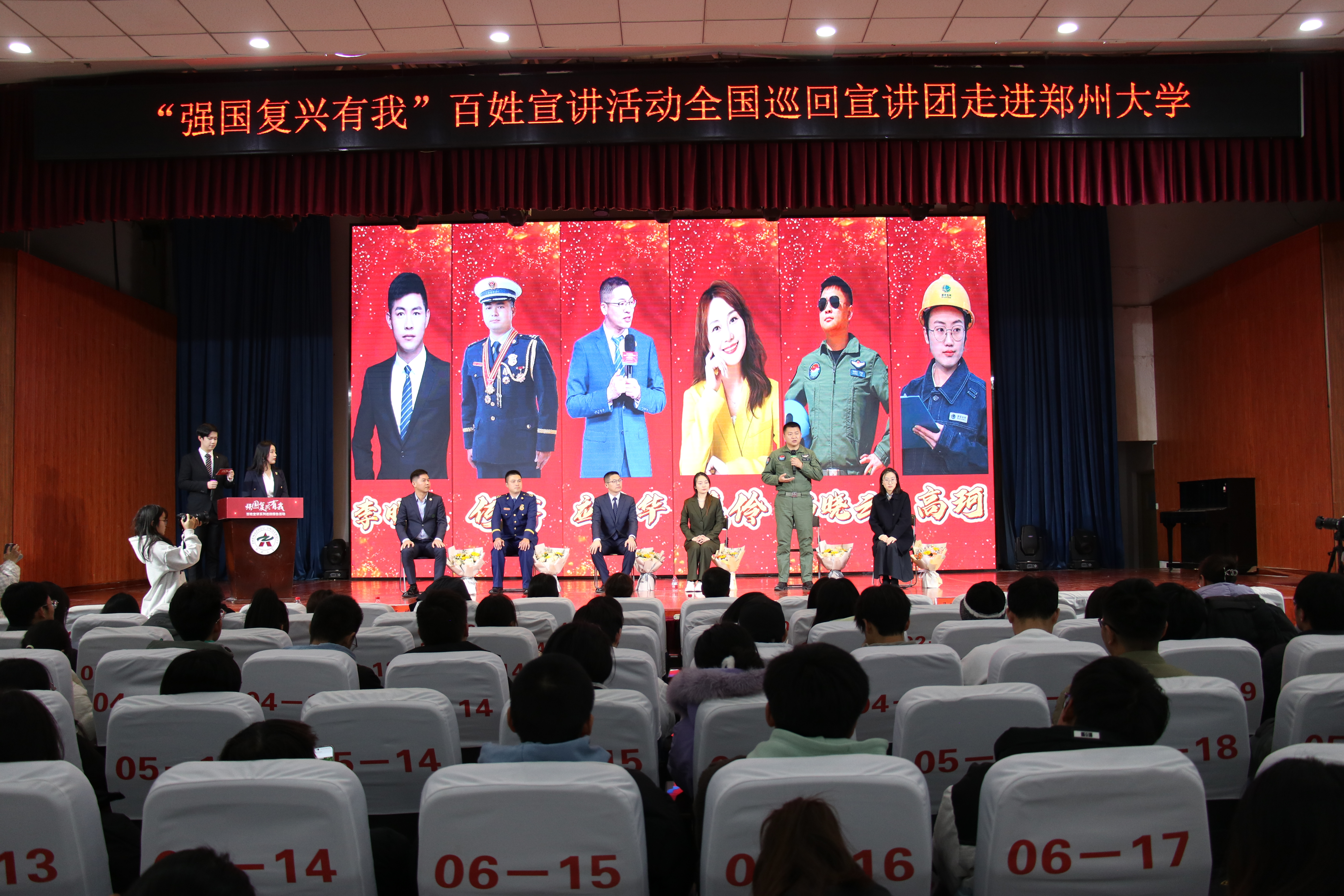 近日,由中央宣传部、全国总工会、共青团中央、全国妇联、共青团河南省委主办的“强国复兴有我”百姓宣讲系列巡回报告活动走进ac米兰官网中文网站。宣讲采取“主题宣讲+互动交流”的形式进行,6名来自各行各业的青年代表结合自身成长经历和行业见闻,围绕“学思想、强信心、奋力推进中国式现代化”,和郑大的青年师生们展开了一场面对面的交流。