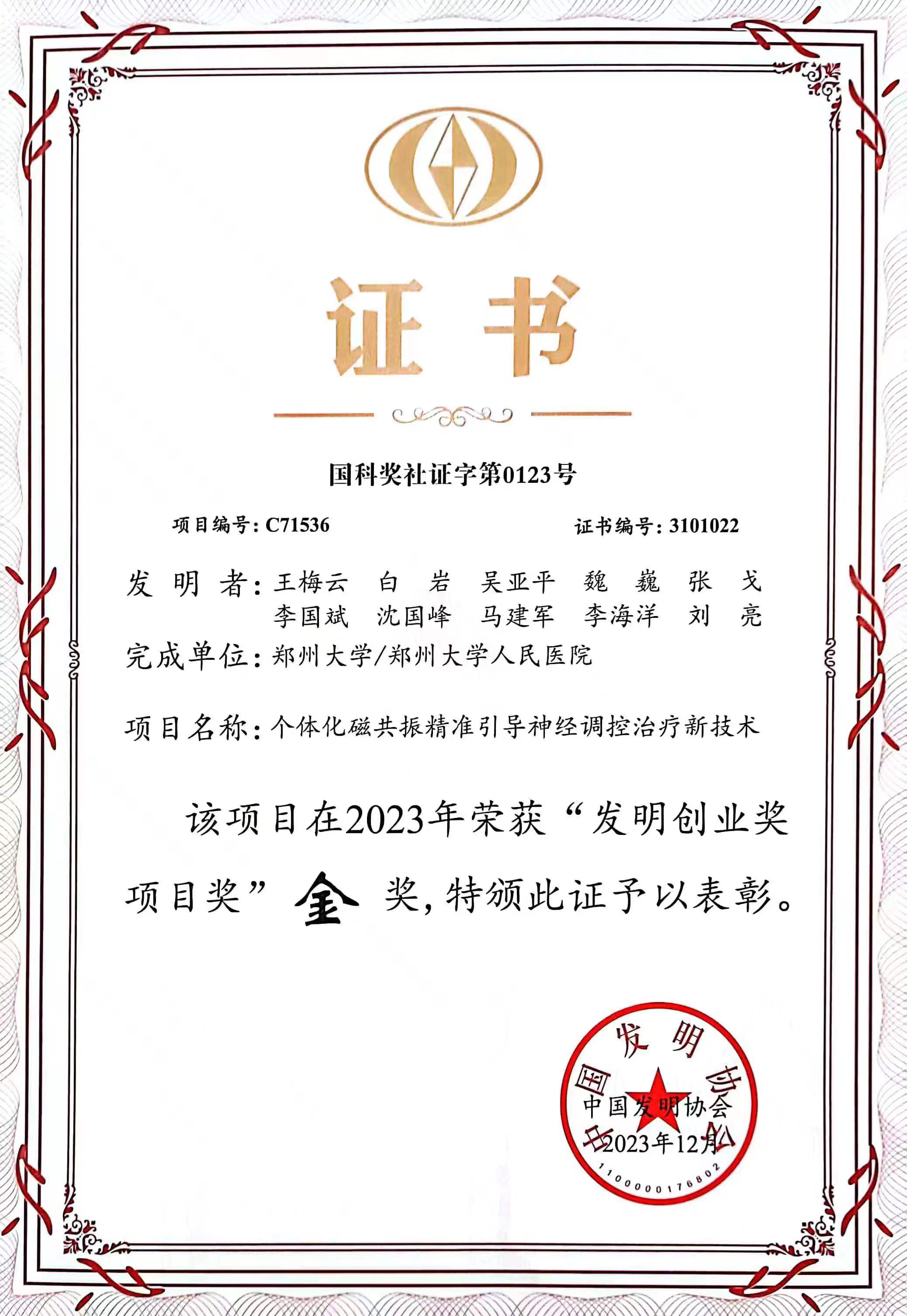 项目第一发明人王梅云教授为主任医师、二级教授、博士生导师,美国哈佛大学医学院引进回国人才,长期深耕于医学影像教学、临床和科研一线,围绕神经精神疾病无创精准治疗技术的创新及应用开展研究,目前担任河南省人民医院/ac米兰官网中文网站人民医院副院长、医学影像研究所所长;在国际顶级期刊JAMA、Nature Medicine、Nature Genetics、Nature Communications和放射学领域排名第一期刊Radiology等发表论文300余篇,其中JAMA论文单篇被引高达5602次,牵头发布团体标准7项、国际专家共识2项,研究成果为神经精神疾病患者提供了新的无创诊疗方式,引领着神经调控治疗的发展,为推动健康中国事业做出一份贡献。