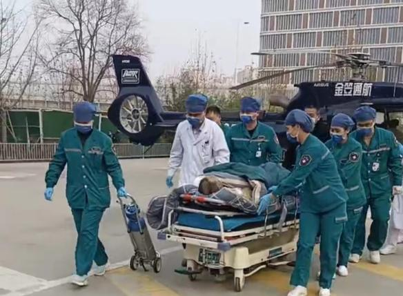 了解到情况紧急,东院区急诊门诊护士长王磊经过评估病情、天气、距离等因素,与家属沟通后决定启动航空救援,机组人员快速整理医疗物资,协调空域、测算航距、申请航线并快速协调周口当地降落地点。当天下午15点46分在周口接到患者,16点49分飞机在东院区安全降落,全程近200公里,开车需要3个小时的时间被缩短到了1个小时,为患者赢得了宝贵的救治时间。