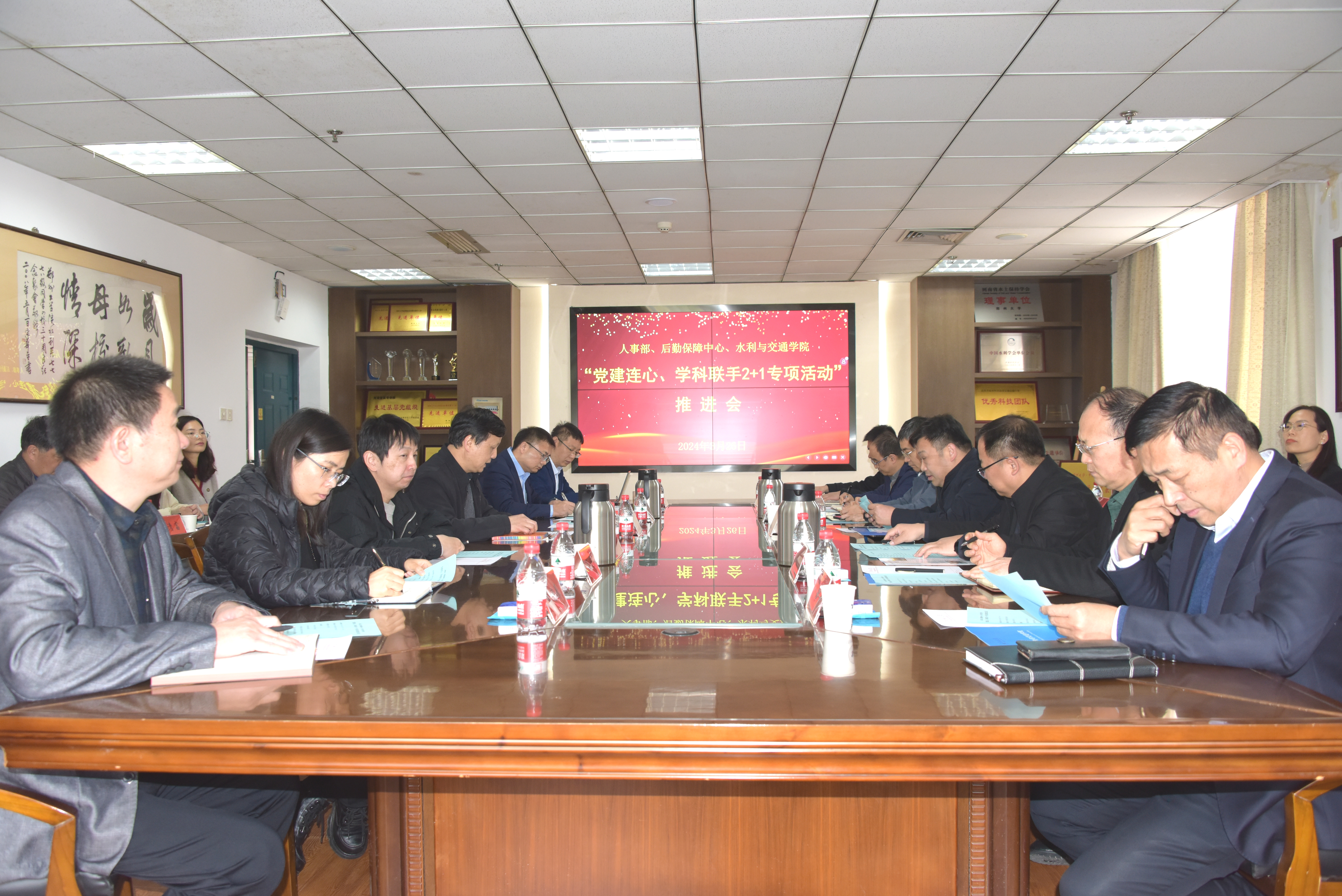 为充分发挥党建引领保障作用,以高质量党建推动学科高质量发展,近日,人事部、后勤保障中心及水利交通学院联合召开“党建连心、学科联手2+1专项活动”推进会。校党委常委、副校长胡少伟、徐东升,副校长王海杰出席,人事部、后勤保障中心负责同志及水利与交通学院班子成员参加会议。