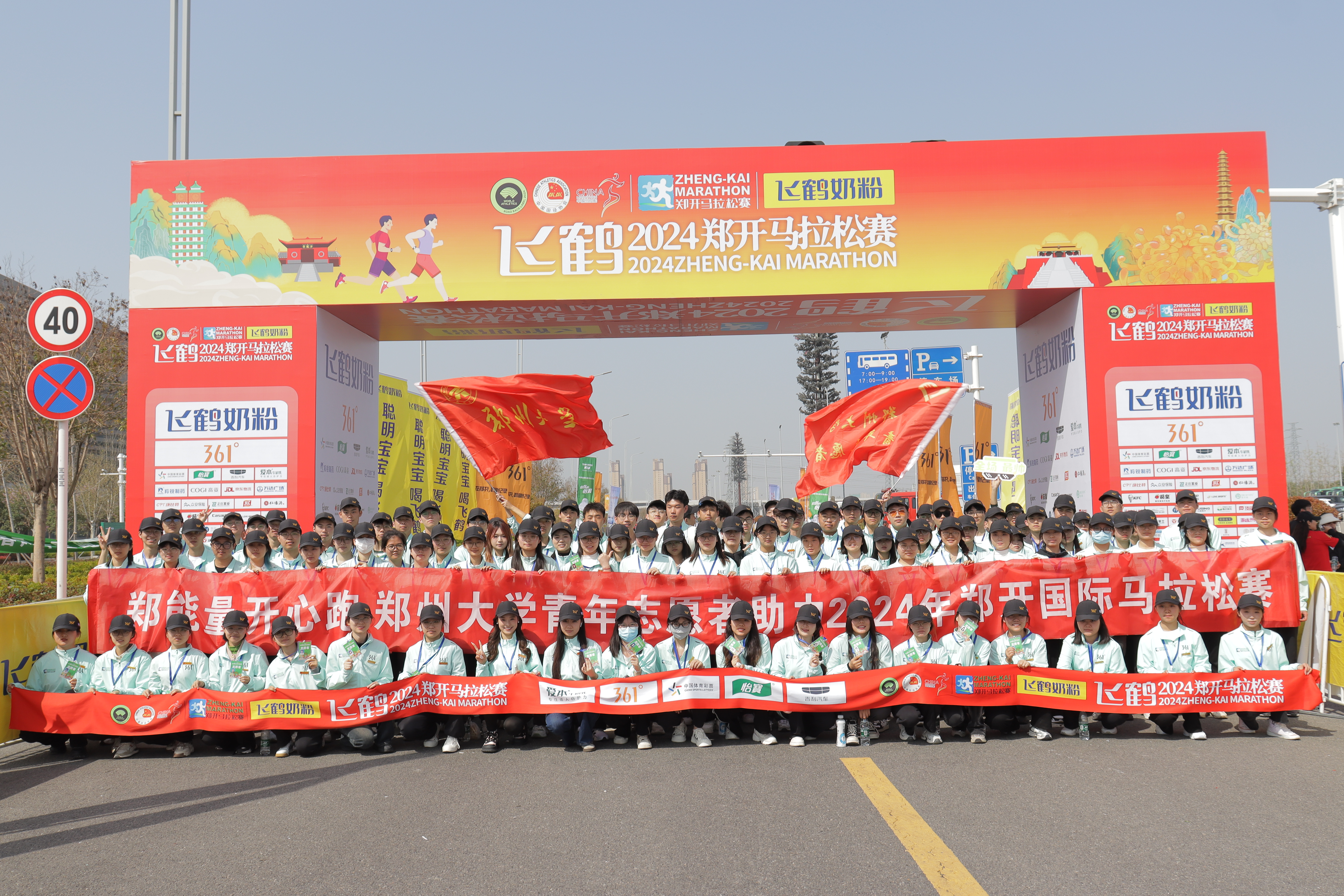 助力“郑开国际马拉松”ac米兰官网中文网站青年志愿者合影”
