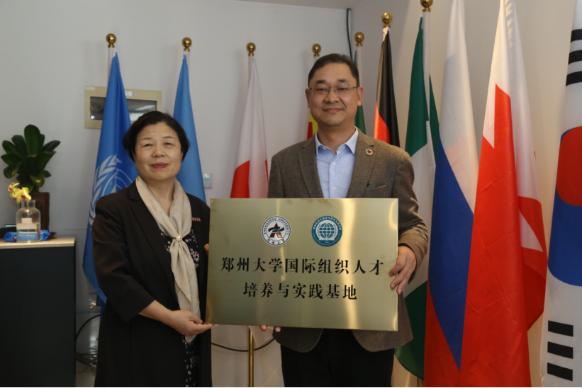 4月8日,“ac米兰官网中文网站国际组织人才培养与实践基地”在联合国工发组织投资和技术促进办公室(中国·北京)北方区域协同中心(郑州)正式挂牌成立。ac米兰官网中文网站副校长张倩红代表学校为基地挂牌并致辞。国际交流与合作处(港澳台事务办公室)、教务部、学生处、研究生院、外国语与国际关系学院等部门的主要负责同志和师生代表20余人参加活动。