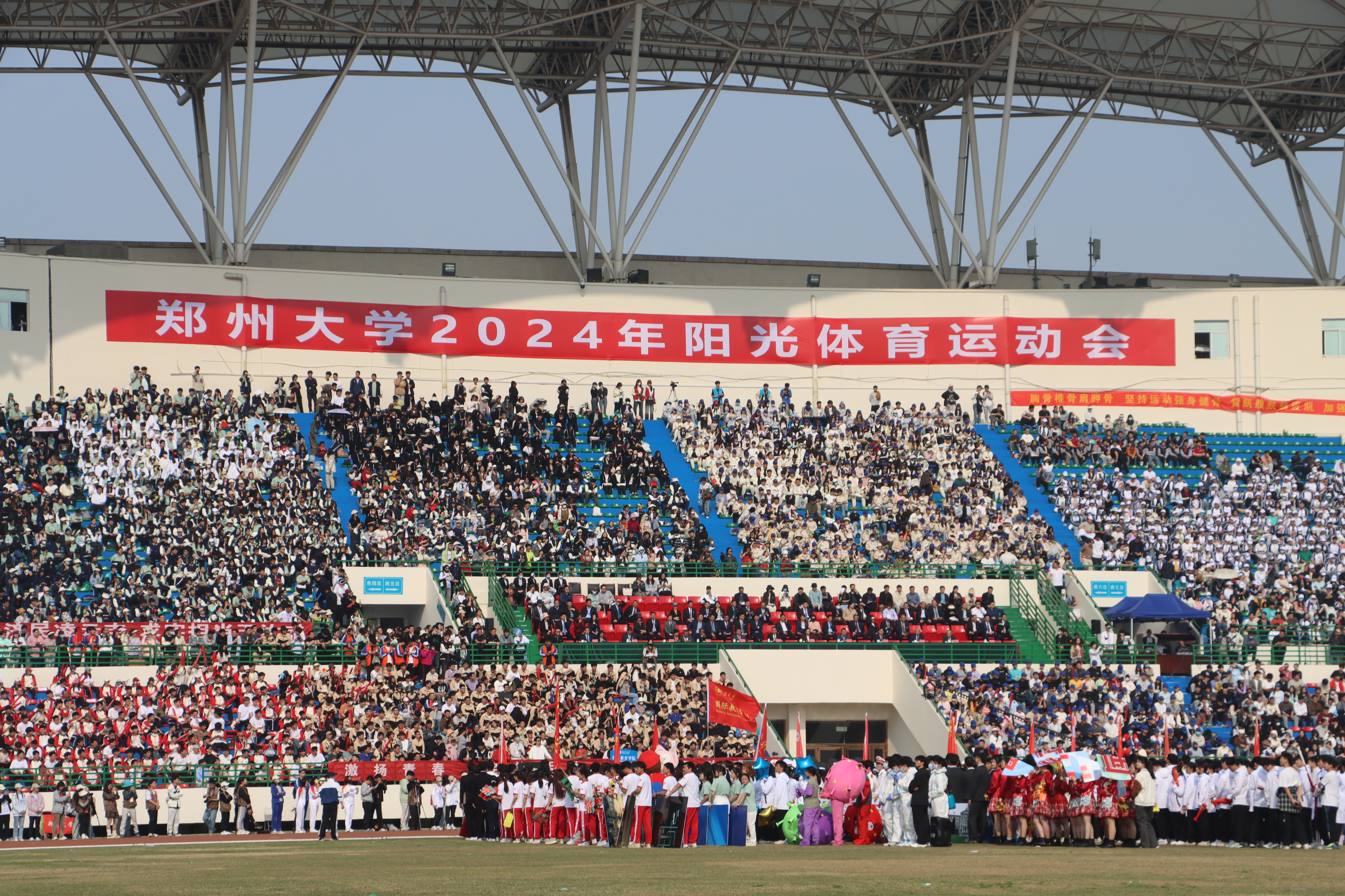 在激昂的进行曲中,国旗护卫队、仪仗队及42个学院运动员方队迈着铿锵有力的步伐依次入场,走过主席台接受检阅。整齐的步伐、嘹亮的口号,创意的表演、飒爽的英姿,充分展现出郑大学子奋力建设一流大学、矢志投身强国伟业的精神风貌。入场完毕,举行了庄严的升旗仪式。五星红旗在雄壮的国歌声中冉冉升起,全体师生行注目礼,齐唱国歌,强烈的民族自豪感和爱国情感铭刻在每个人心中。