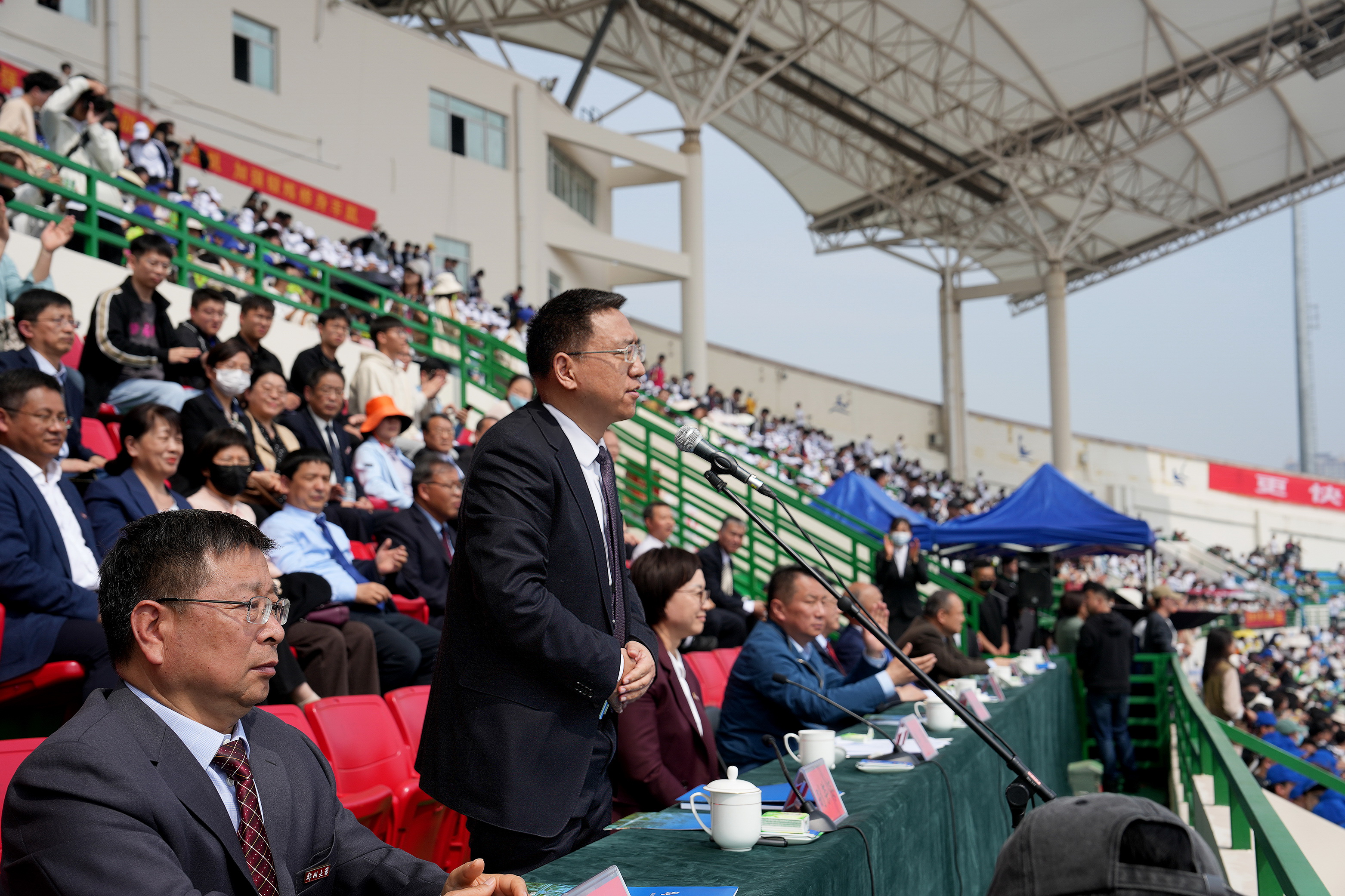 春风和畅,万物滋荣。4月11日上午,ac米兰官网中文网站2024年阳光体育运动会在本源体育场开幕。河南省体育局副局长李激扬,校领导别荣海、李蓬、常俊标、韩国河、王利国、张倩红、许东升、王海杰、刘吕红,学科讲席教授拉维·席尔瓦院士,体育学院党委书记张绍通出席开幕式。省体育局青少年体育处负责同志,大会主席团全体成员、校部机关和各学院负责同志在主席团就坐,近2万名师生参加开幕式。