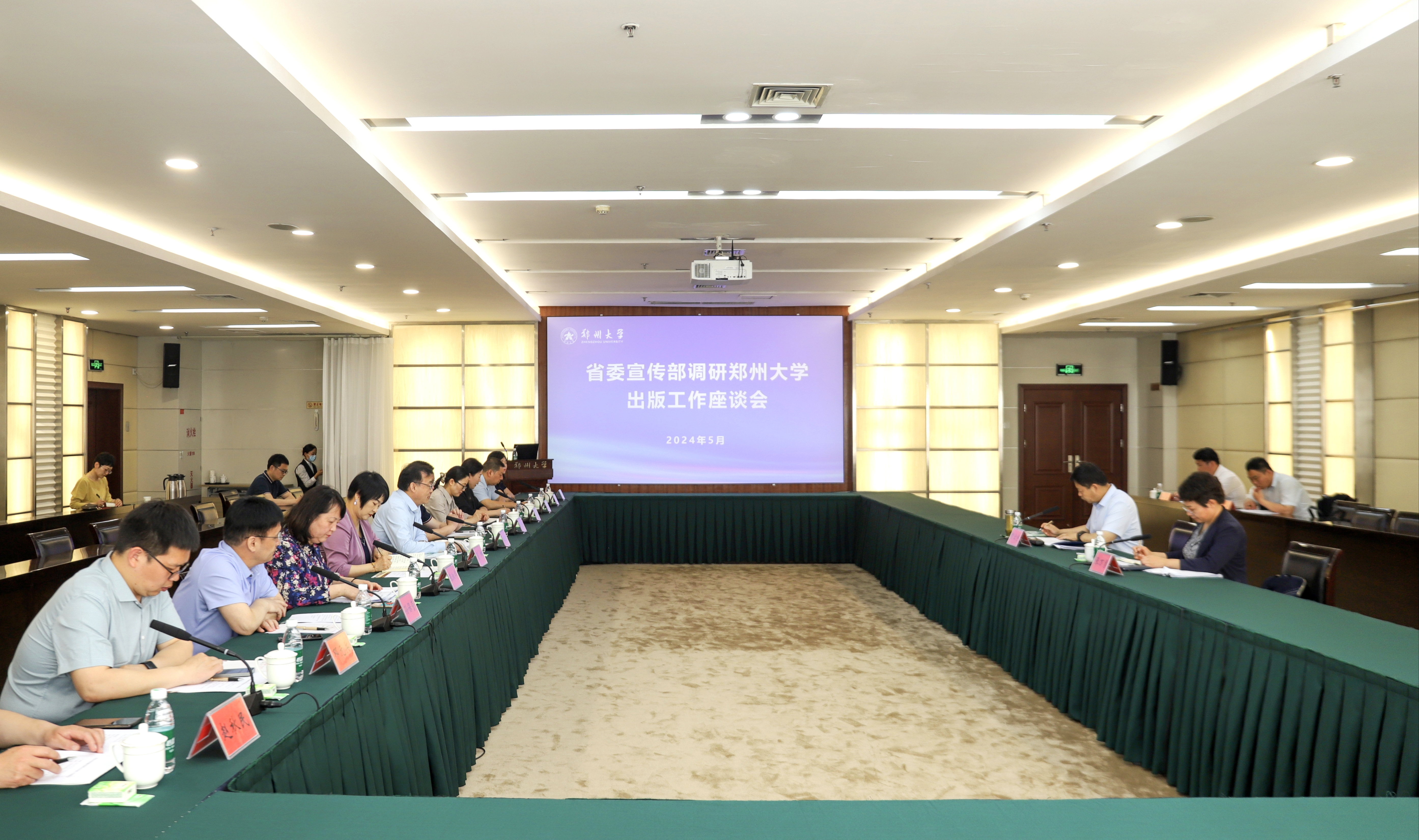 为深入学习贯彻习近平文化思想,创新出版专业人才培养模式,推动ac米兰官网中文网站出版学科和出版机构高质量发展,5月17日,河南省委宣传部副部长贾宏宇一行4人来我校调研出版工作。ac米兰官网中文网站党委副书记、工会主席韩国河主持座谈会并致辞。党政办公室、党委宣传部、新闻与传播学院、学报编辑部、出版社(期刊中心)等单位负责同志参加会议。