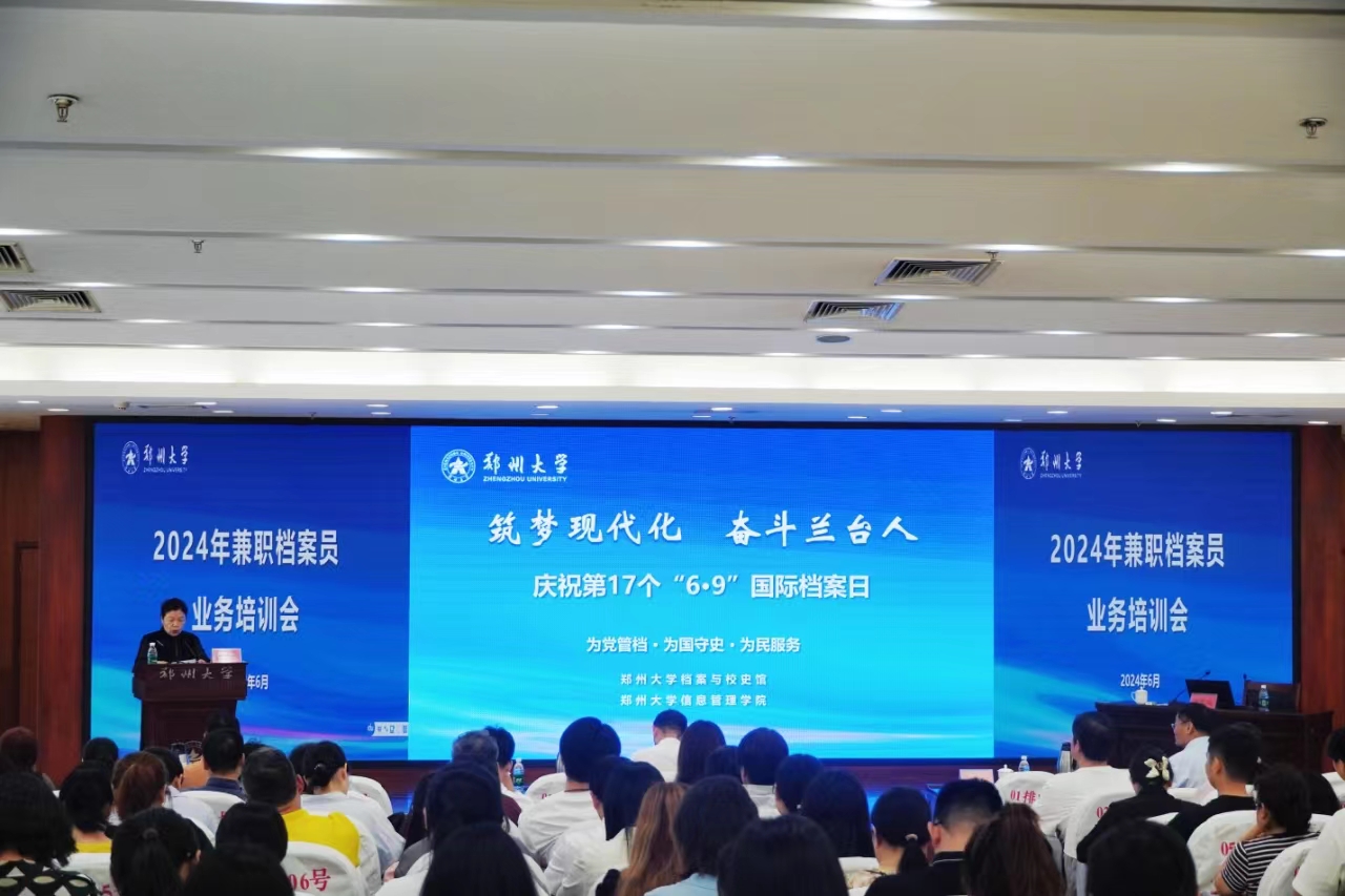 近日,ac米兰官网中文网站档案与校史馆、信息管理学院以“筑梦现代化奋斗兰台人”为主题,举办庆祝第17个国际档案日暨2024年ac米兰官网中文网站兼职档案员业务培训会。河南省档案馆副馆长翟霣远,ac米兰官网中文网站副校长张倩红出席,档案与校史馆、信息管理学院负责同志,全校各单位120余名专、兼职档案员和师生代表参加会议。
