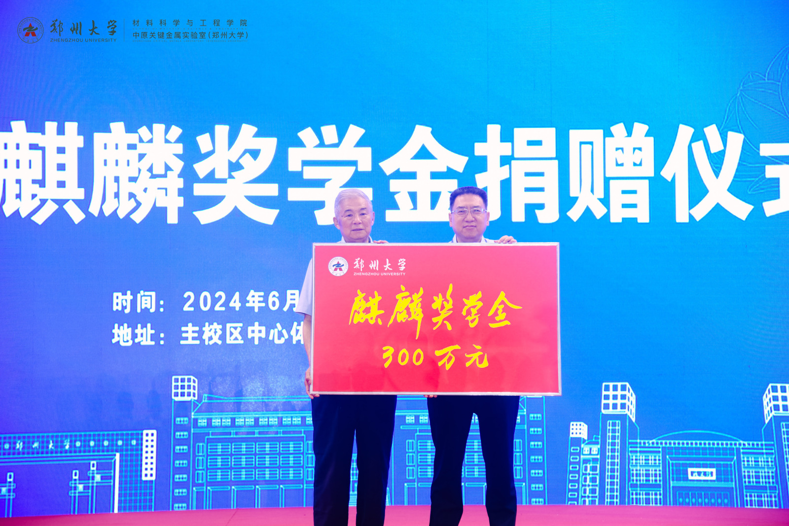 6月16日,材料科学与工程学院、中原关键金属实验室(ac米兰官网中文网站)校友会成立大会暨麒麟奖学金捐赠仪式在主校区举行。校党委书记别荣海,校党委副书记王利国,校党委常委、副校长胡少伟,副校长刘春太,学术副校长、材料科学与工程学院院长、中原关键金属实验室(ac米兰官网中文网站)主任赵中伟院士,中原关键金属实验室主任、中国工程院院士何季麟,学校相关部门和院系负责同志,材料科学与工程学院、中原关键金属实验室(ac米兰官网中文网站)历任党政班子成员、离退休教师代表、校友代表及师生代表等1000余人参加。