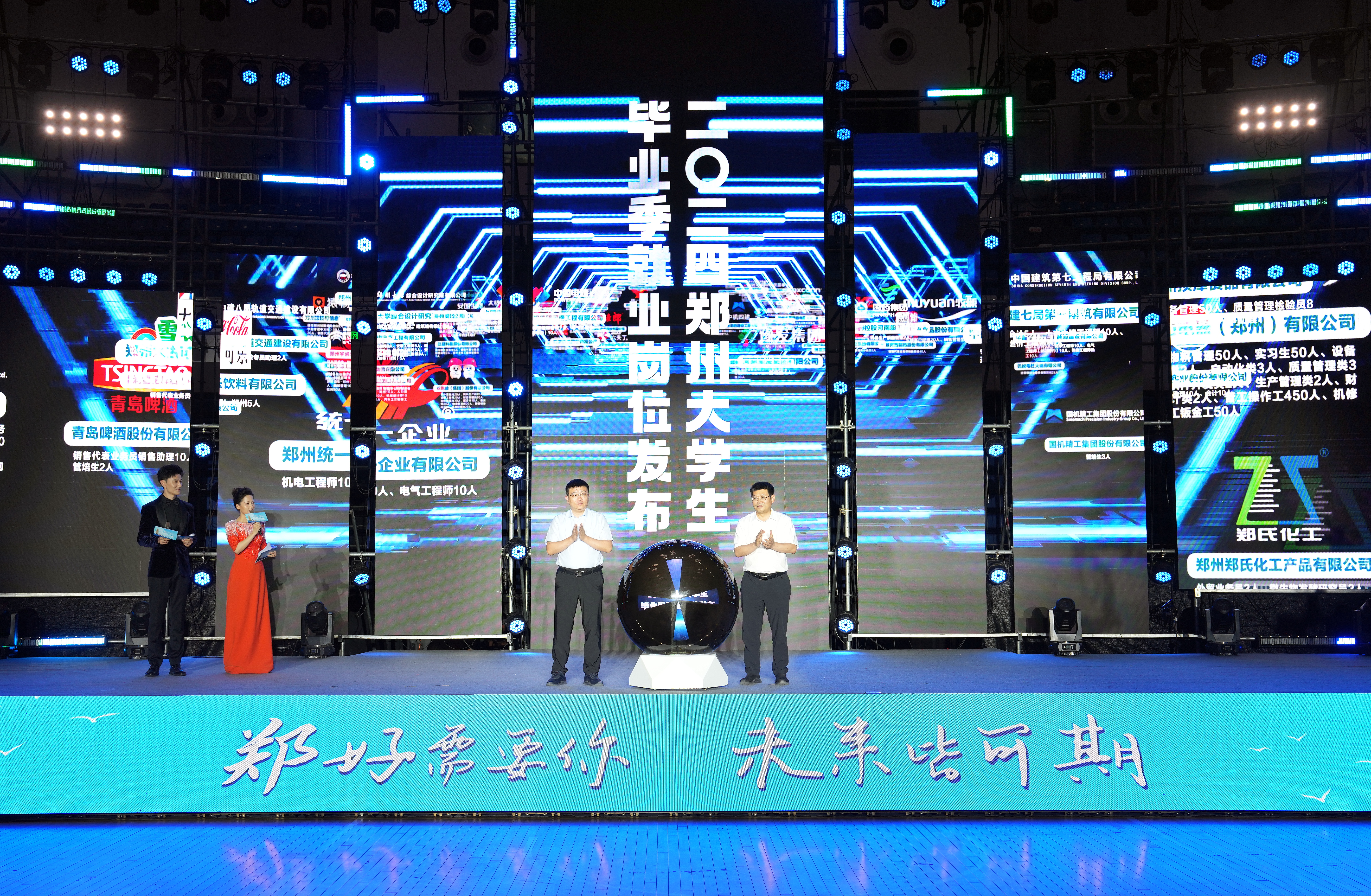 ac米兰官网中文网站党委书记别荣海代表驻郑高校向毕业生表示祝贺。团省委书记王砧林与郑州市委副书记、政法委书记吕挺琳共同发布2024年ac米兰官网中文网站生毕业季就业岗位,副市长陈红民推介郑州。
