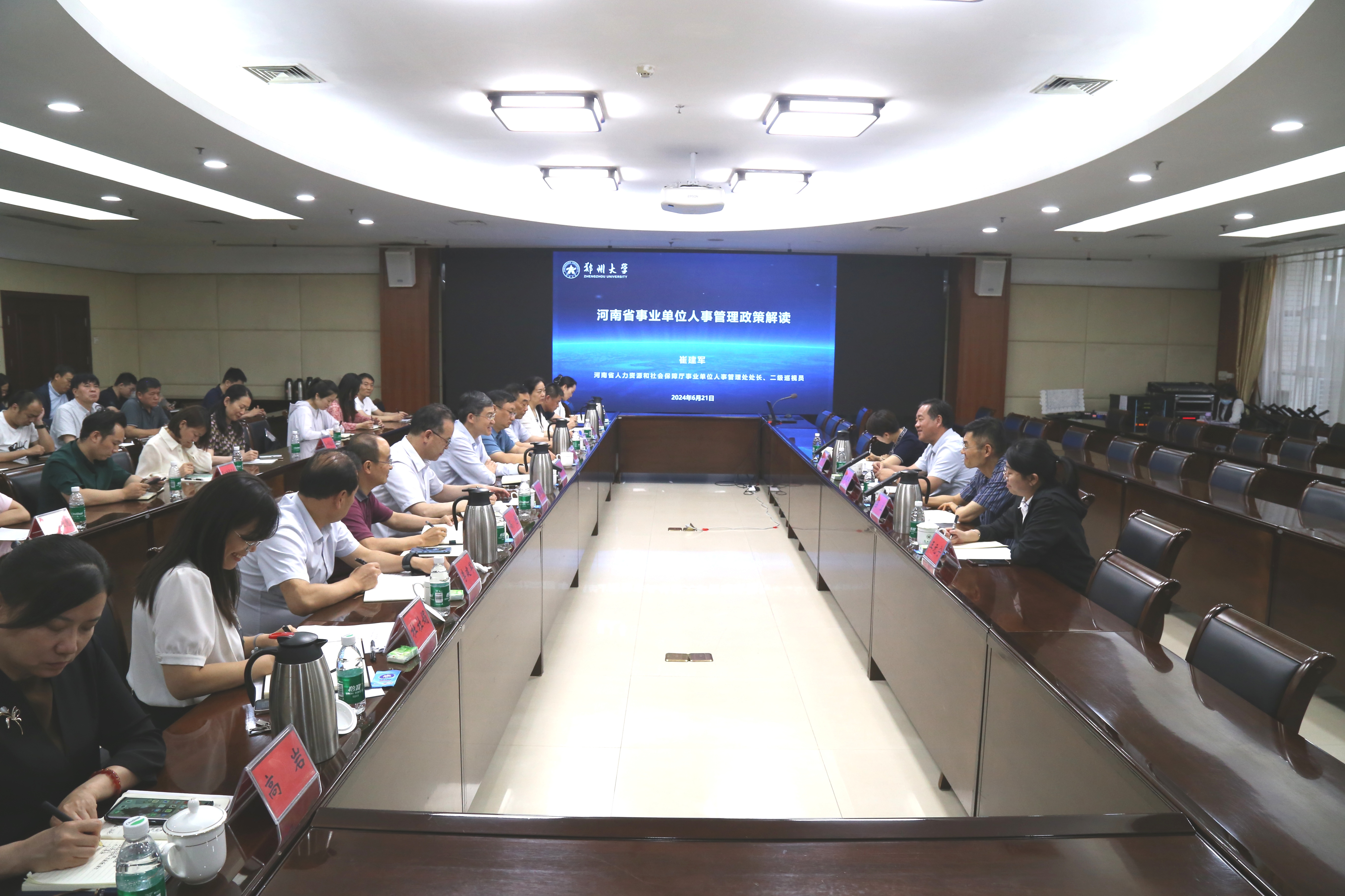 为进一步提升学校人事管理工作水平和服务质量,人事部持续开展综合素质能力提升系列培训,近日,省人社厅二级巡视员、事业单位人事管理处处长崔建军一行受邀来校作人事政策解读宣讲。副校长王海杰出席并主持会议,河南医学院,医学科学院、天健先进生物实验室(ac米兰官网中文网站),学校第一、二、三、五附属医院人事部门等部门相关负责同志,以及人事部(党委教师工作部、党委人才办公室)全体人员参加。