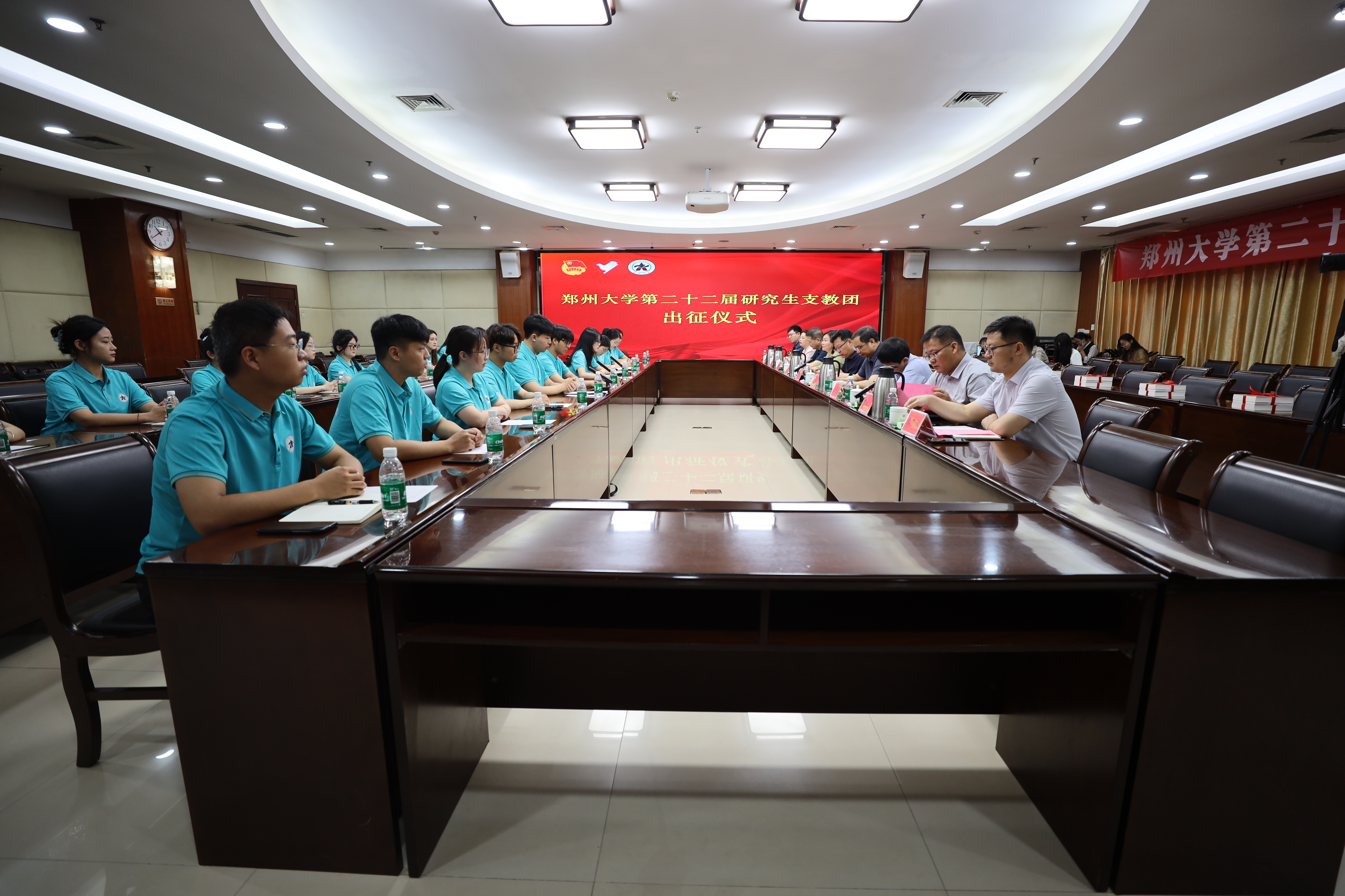王利国讲话。他代表学校党委和行政对即将出征赴西部支教的志愿者们表示感谢,对他们勇担青年使命、积极投身志愿的行动给予高度评价。他深情回顾了自己在河南省卢氏县开展脱贫攻坚的工作经历,并对研究生支教团同学提出五点希望:一是志存高远,脚踏实地。要牢记习近平总书记对青年学子的殷殷嘱托、切切期望,树立远大理想,勇担青年使命,脚踏实地干工作,持之以恒做奉献,把青春华章谱写在祖国大地上。二是担当奉献,实学实干。要弘扬“奉献、友爱、互助、进步”的志愿精神,勇敢实践、担当奉献,读好无字之书,在接地气中增底气,躬身入局,做干事创业的行动派。三是砥砺品格,磨练意志。要发扬艰苦奋斗精神,把困难当成人生的教科书、把困难当成励志的磨刀石、把困难当成前进的发动机,不畏艰险、迎难而上,在战胜困难中把握发展脉搏,在不懈努力中回应时代呼唤,在基层摔打中成长成熟成才。四是团结一心,合作进取。要增强团队意识,树立团队精神,互相关心、互相爱护、互相帮助,凝聚集体智慧、汇聚团队力量,在追求卓越中擦亮ac米兰官网中文网站支教品牌,在团结进取中树立郑大学子良好形象。五是保持健康,注意安全。要加强体育锻炼,强化人身安全意识,保持积极乐观的心态,确保身心健康,做到顺利出发,平安归来。