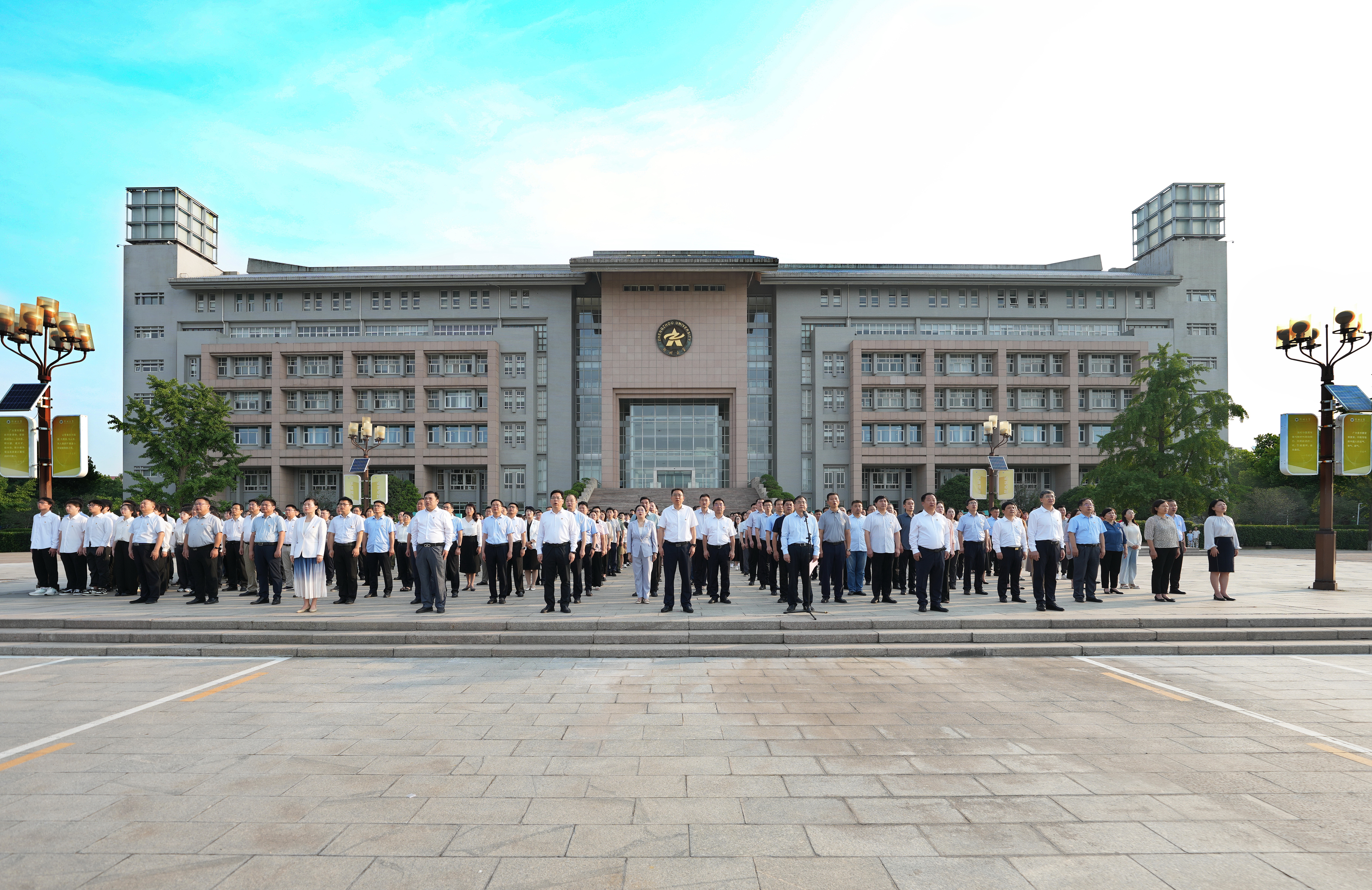 为庆祝中国共产党成立103周年,喜迎新中国成立75周年,进一步激励全校党员师生坚定理想信念,凝聚奋进力量,推动党纪学习教育走深走实,7月1日,ac米兰官网中文网站在主校区五星广场举行升国旗仪式。校党委书记别荣海,校党委副书记王利国,校党委常委、副校长胡少伟,校党委常委、副校长徐东升,副校长王海杰,校党委常委、纪委书记陈曦出席,机关党员教师代表、党员学生代表600余人参加升国旗仪式。活动由校党委副书记、工会主席韩国河主持。