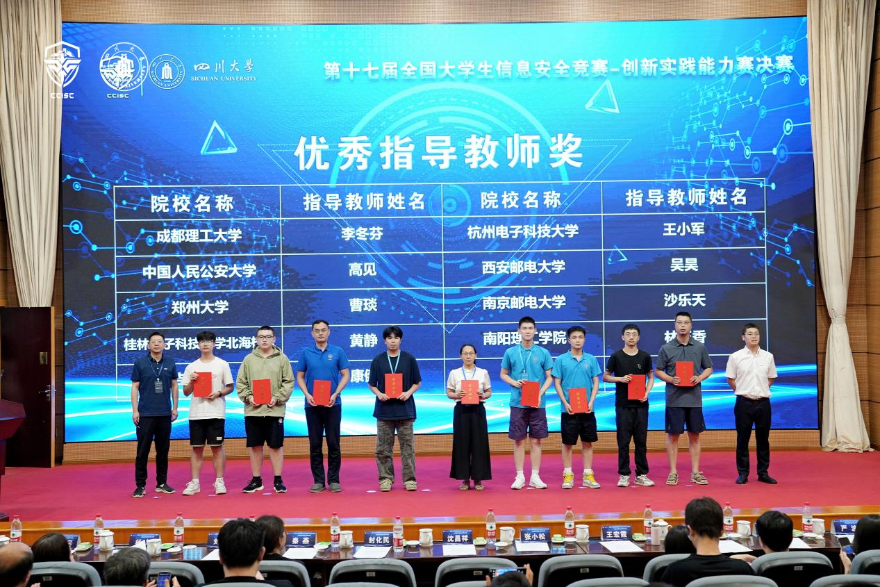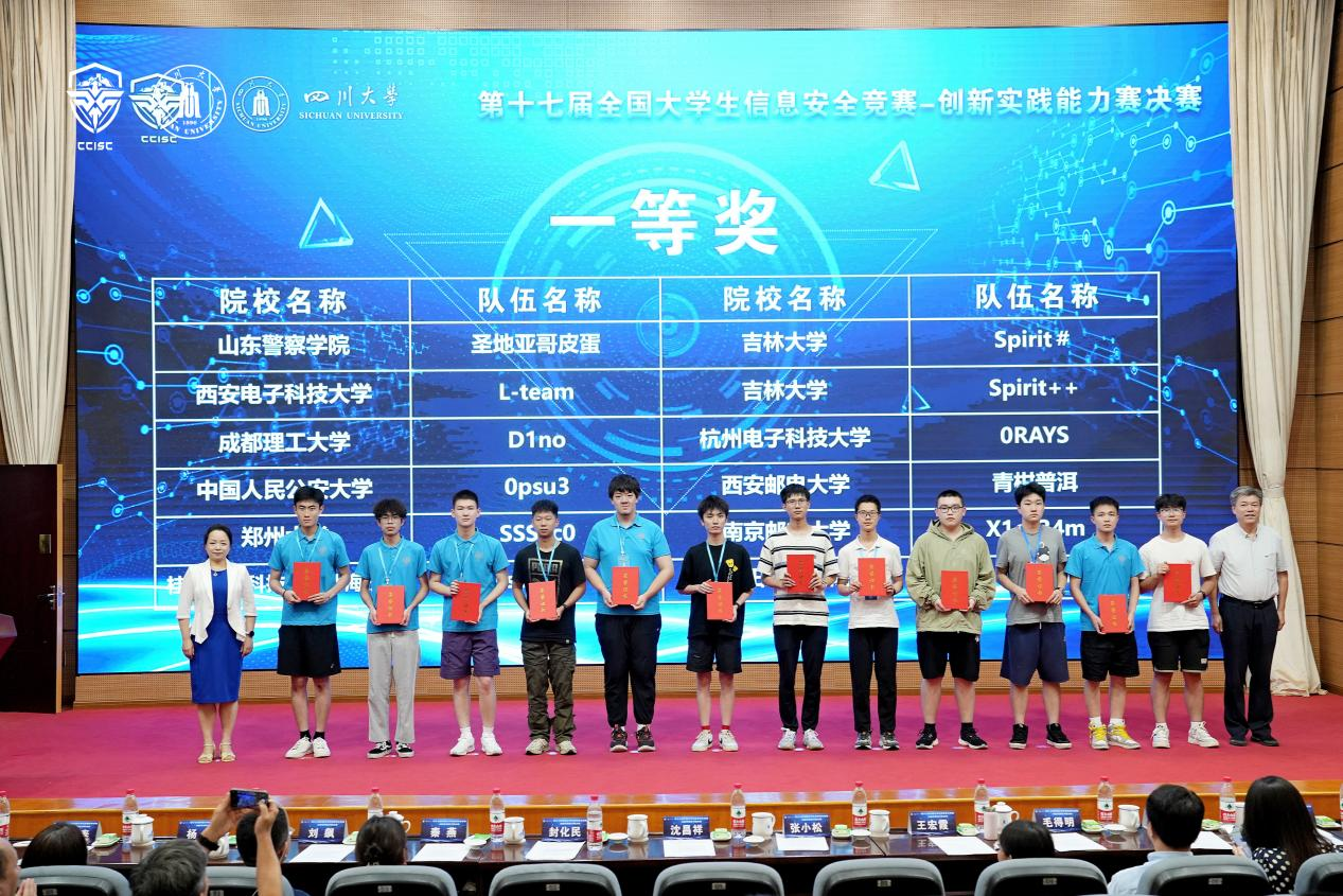 近日,由教育部高等学校网络空间安全专业教学指导委员会主办,四川大学承办的第十七届全国大学生信息安全竞赛创新实践能力赛决赛在四川大学举行。我校网络空间安全学院嵩山实验班杨浩琦、吕玉培、曲奎润、夏君豪等4位同学组成的SSSec0战队获得一等奖,指导教师曹琰获得“优秀指导教师”称号。