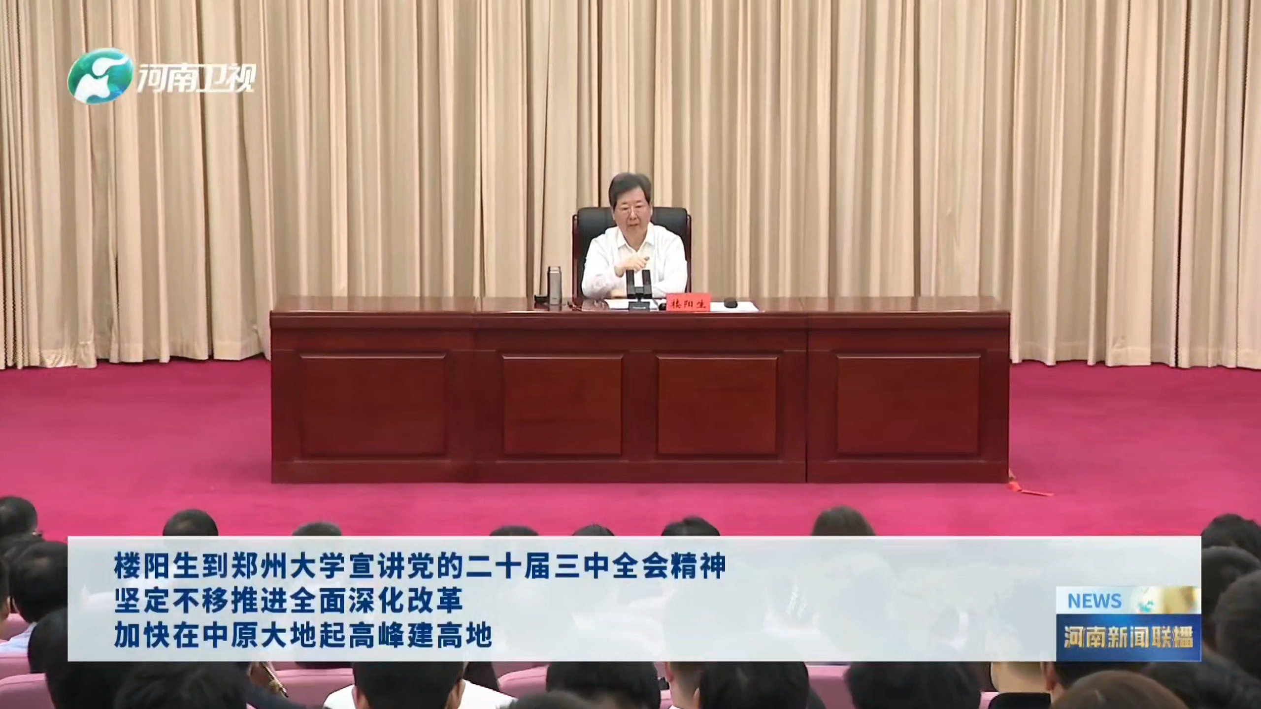 楼阳生指出,近年来,河南牢记习近平总书记“奋勇争先、更加出彩”殷殷嘱托,以前瞻30年的眼光想问题、作决策、抓发展,锚定“两个确保”、实施“十大战略”、推进“十大建设”,中国式现代化建设河南实践迈出坚实步伐。特别是通过持之以恒抓好一批变革性、牵引性、标志性举措,河南经济发展正在发生动能之变、结构之变、质量之变、环境之变。要把思想和行动统一到党的二十届三中全会精神上来,以钉钉子精神抓好各项改革任务落实,以进一步全面深化改革开创中国式现代化建设河南实践新局面。