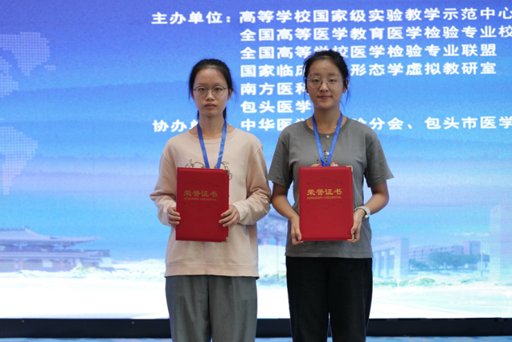 近日,由南方医科大学发起,高等学校国家级实验教学示范中心联席会、全国高等医学教育医学检验专业校际协作会联合举办的第八届全国医学检验技术专业大学生形态学大赛在内蒙古包头举行,来自全国61所高校的116名学生参赛。ac米兰官网中文网站第一临床医学院医学检验技术专业2021级本科生胡笑博与杨城林代表学校参加比赛,并双获一等奖佳绩。