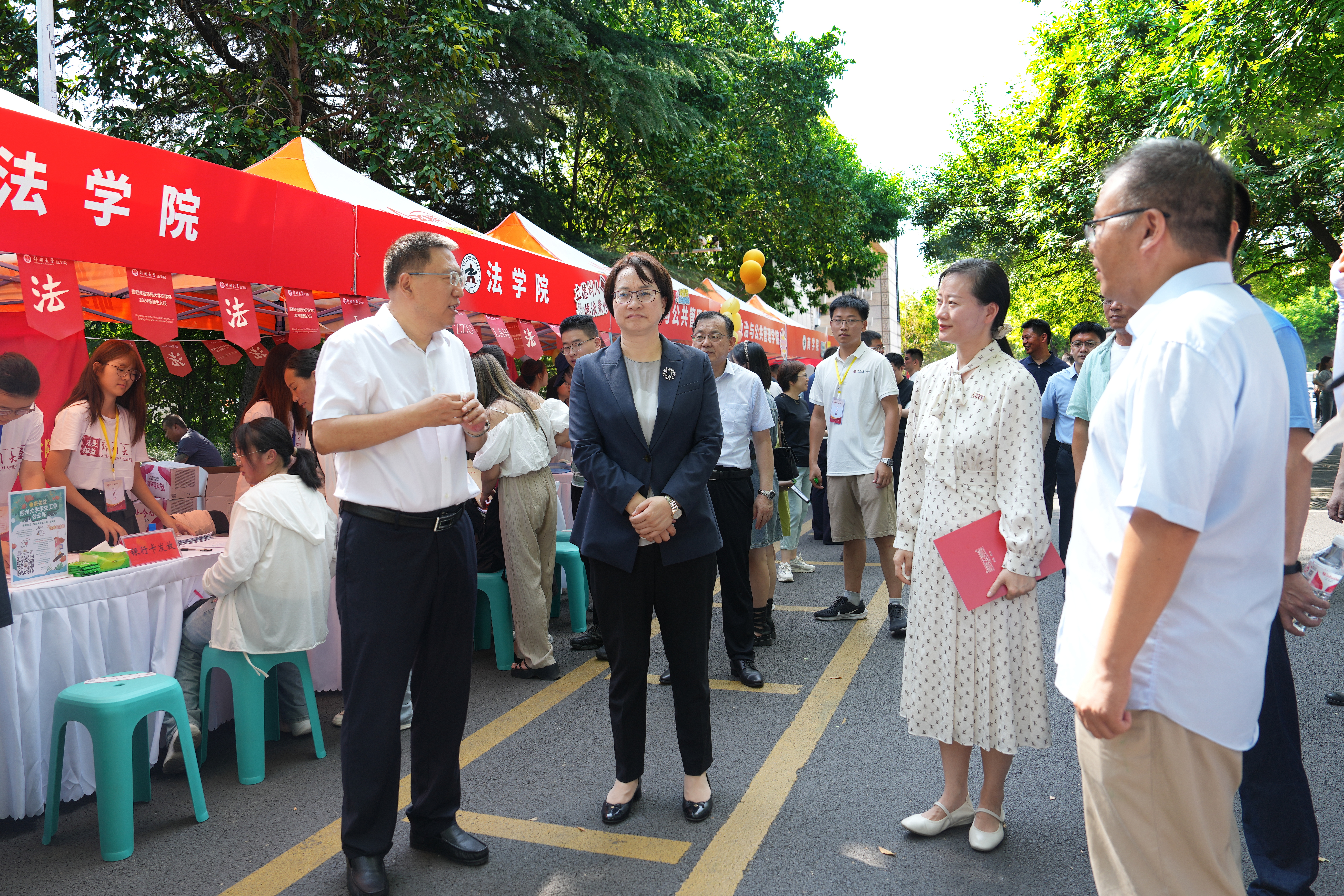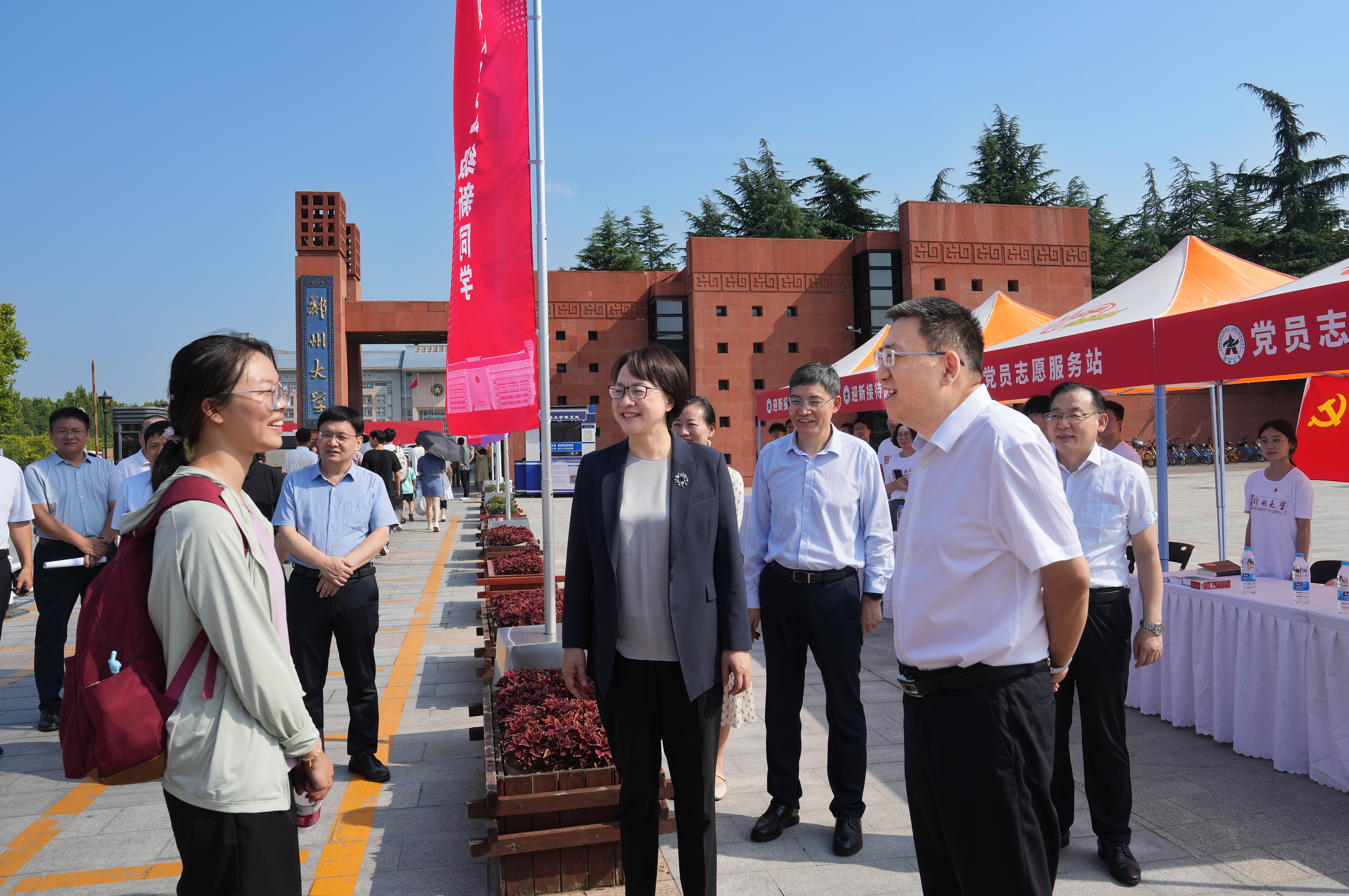 8月31日上午,校党委书记别荣海、校长李蓬院士带领全体在校校领导分别到主校区、南校区、北校区和火车站迎新点检查指导2024级本科生迎新工作,看望新生和家长,慰问迎新工作人员。校领导到南门检查新生入校工作,听取入校流程、交通疏导等情况汇报,向前来报到的新生表示祝贺。在理工科、文科、医科迎新点,校领导详细了解各学院新生报到、专业设置、招生就业、拔尖人才培养、国际交流等情况,与来自省内外和港澳台的新生及其亲友交流互动、合影留念,并向辛勤付出的师生员工和志愿者表示感谢。校领导为新生讲解校徽含义,鼓励大家接续发扬郑大精神,德智体美劳全面发展,要求各培养单位瞄准国家所需和区域优势,积极培育交叉融合新兴专业。在荷园“一站式”学生社区,校领导查看迎新数据平台,了解实时报到情况,听取信息化迎新服务工作汇报,向家庭经济困难新生发放“爱心礼包”,勉励他们“安心学习,勇敢追梦”,叮嘱相关部门做好资助育人,确保每一个学生无忧入学,顺利完成学业。