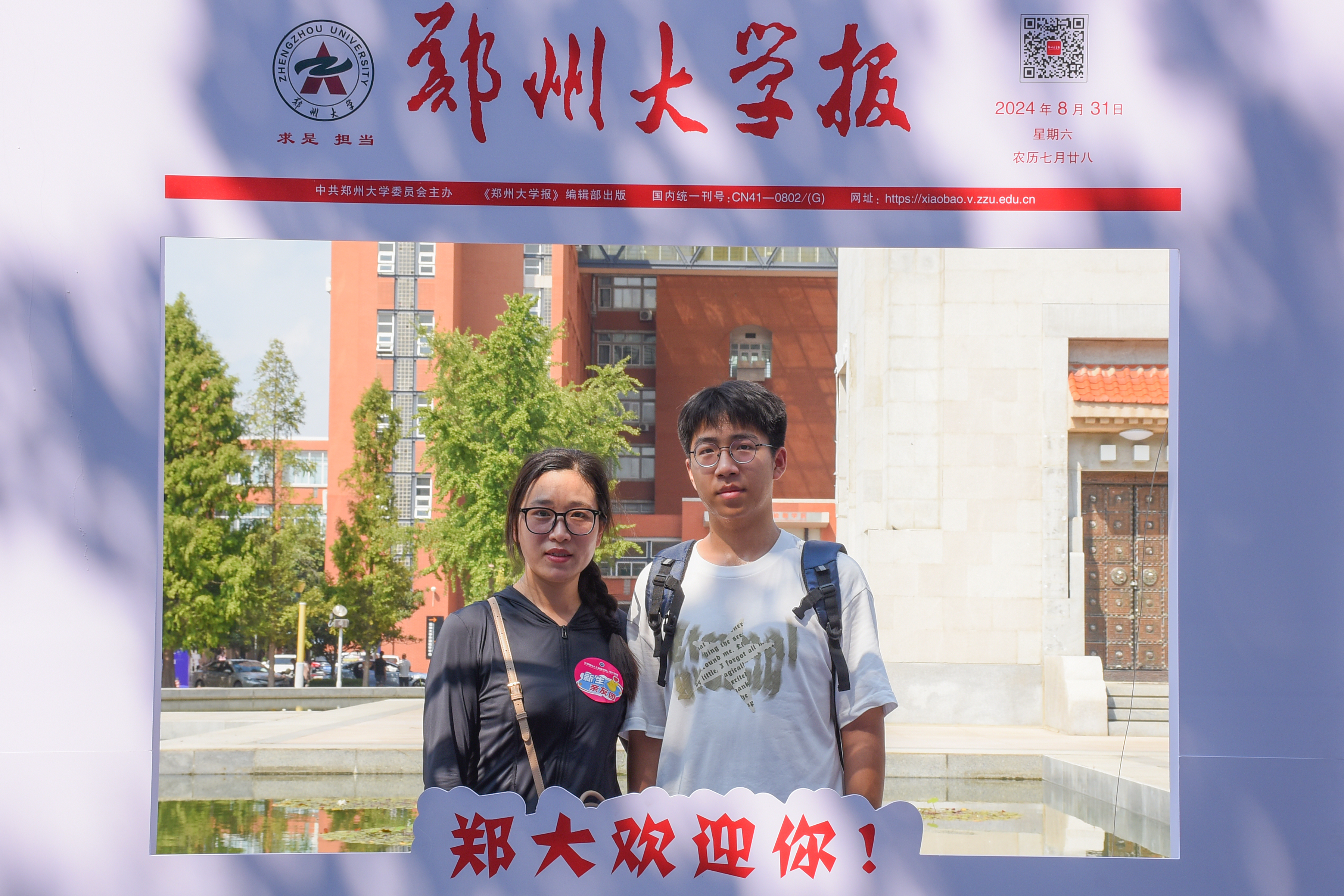 “孩子报考自己的母校,就是相信孩子在郑大能够成长为一名有‘材料’的人,为国家作贡献!”材料科学与工程学院迎来了一位24年前从郑大毕业、再次回到母校来送孩子报到的家长张贞祥,父子成“校友”。在计算机与人工智能学院、软件学院报到点,一辆无人驾驶车正在运送行李,旁边展示着无人驾驶船、四足机器人,不远处还有物理学院研发的机器狗,吸引新生和家长拍照,科技迎新既“创心”又“赢心”。报到当天恰逢三名新生生日,化工学院精心准备了生日蛋糕,现场师生一起切蛋糕为他们庆生,气氛热烈而喜庆。网络空间安全学院制作学院介绍、学科建设、党建工作等20余块迎新展板,印发400份迎新手册,促进新生和家长全面了解学院情况。生命科学学院设计新生“签字墙”,利用卡片、毛线等工具巧妙组合成生物元素——DNA双螺旋图形,展现专业特色和学科魅力。