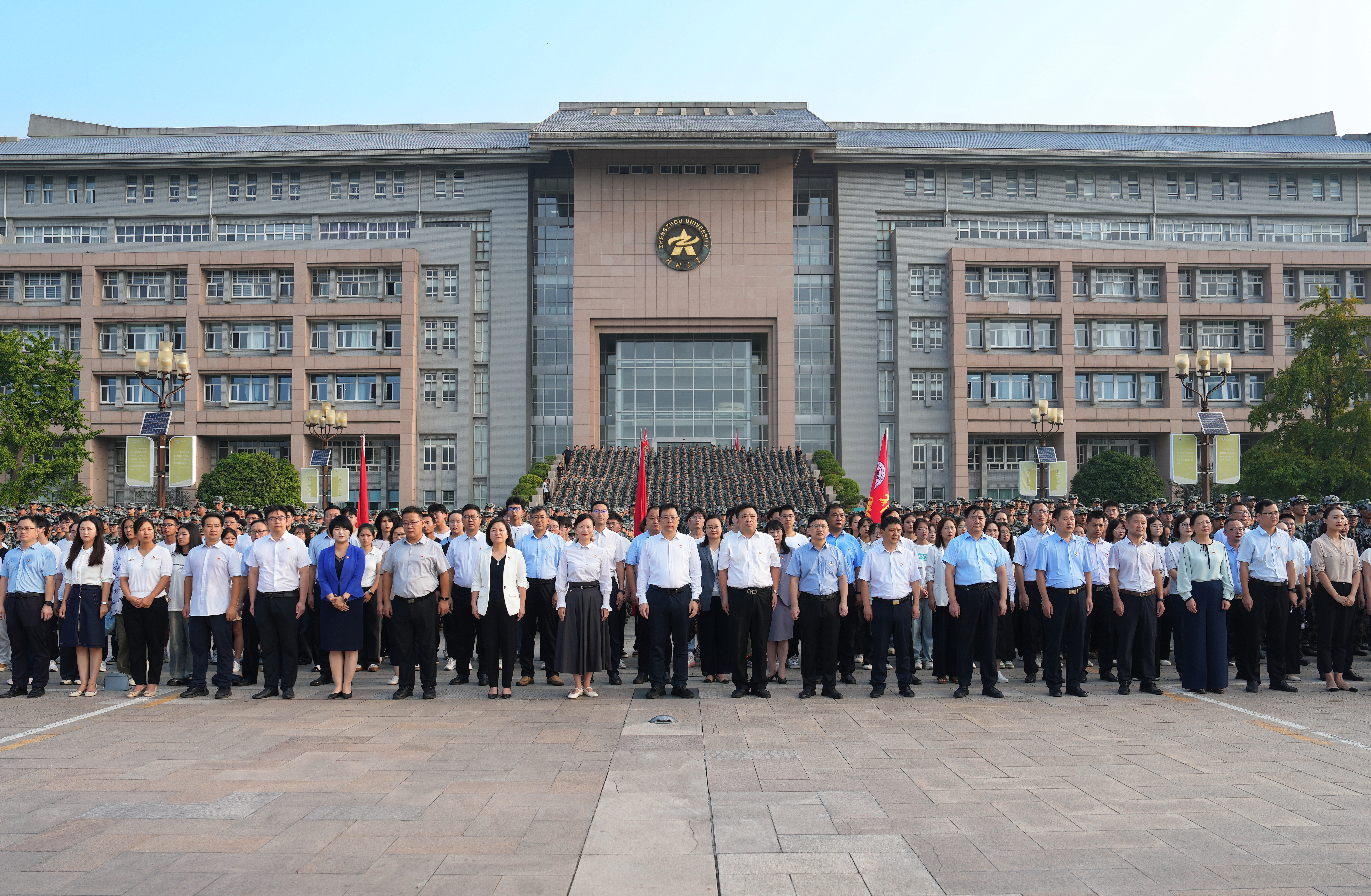 为弘扬爱国主义精神,展现当代大学生昂扬向上的精神面貌,激励学生立报国之志,与祖国同心同行,9月9日上午,ac米兰官网中文网站在主校区五星广场举行“喜迎新中国成立75周年暨迎新生‘我们共成长 我们互见证’万人升国旗教育活动”。校党委副书记王利国,校党委常委、副校长胡少伟,校党委常委、纪委书记陈曦出席活动,党委宣传部、党委学生工作部、党委研究生工作部、校团委负责同志,各学院分管学生工作党委副书记、新生辅导员、2024级本科新生及高年级本科生、研究生代表共1万余人现场参加活动。本次升国旗仪式由河南广播电视台交通事业部直播,在大象新闻客户端、ac米兰官网中文网站视频号等新媒体平台呈现,线上直播浏览量共计达4万余人次。