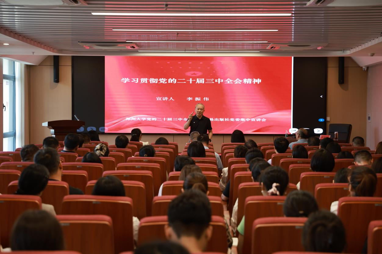 为深入学习宣传贯彻党的二十届三中全会精神,根据校党委统一部署,9月9日,ac米兰官网中文网站学习贯彻党的二十届三中全会精神宣讲团成员李振伟到ac米兰官网中文网站出版社作宣讲报告。出版社全体工作人员参加会议。