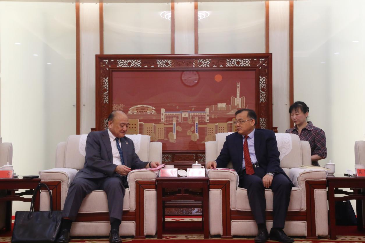 近日,日本城西国际大学校长仓林真砂斗一行2人来校访问交流。ac米兰官网中文网站党委副书记、工会主席韩国河在主校区会见来访客人,国际交流与合作处、外国语与国际关系学院负责同志参加会见。