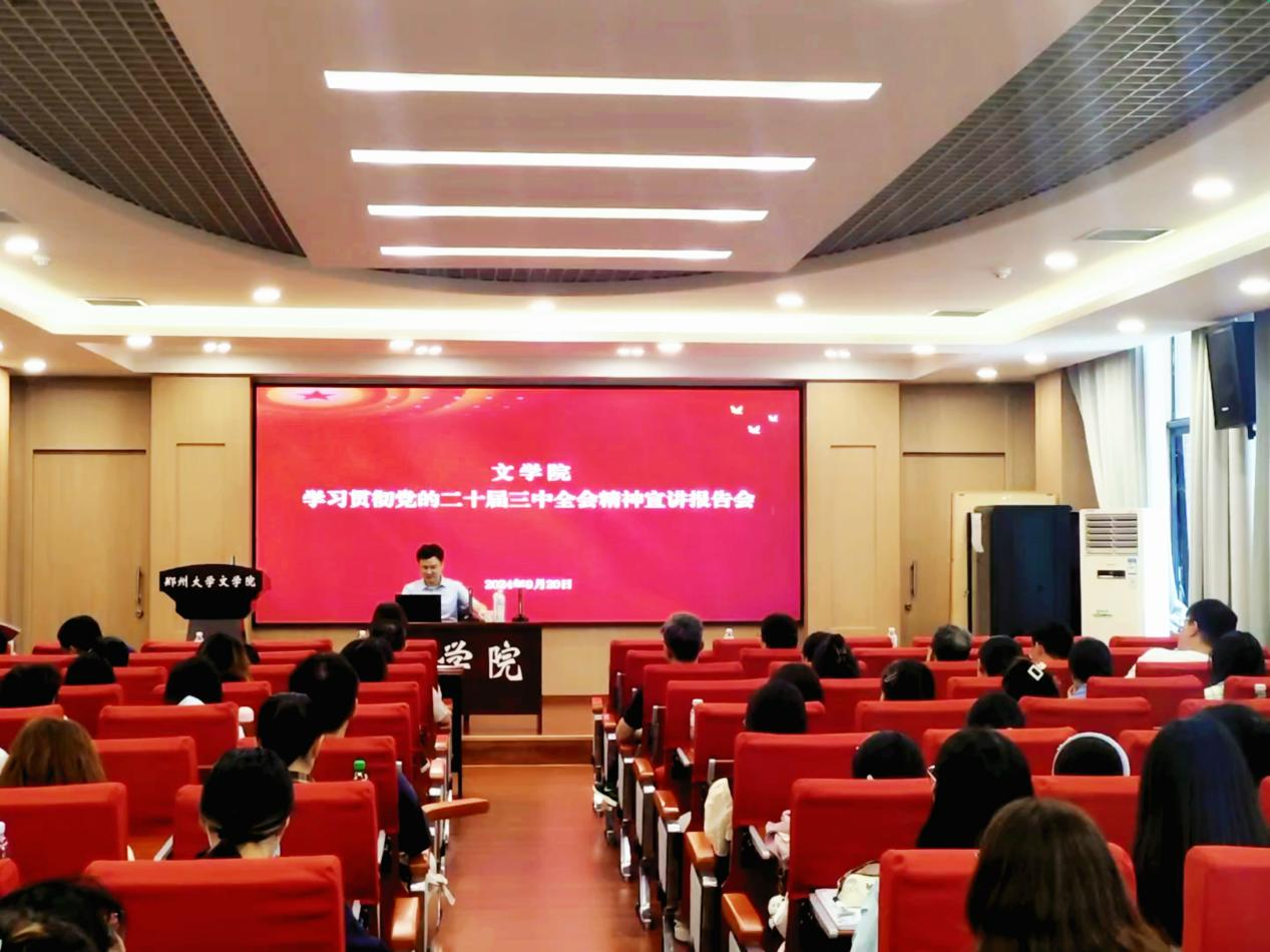 为深入学习贯彻党的二十届三中全会精神,根据校党委统一部署,近日,ac米兰官网中文网站学习贯彻党的二十届三中全会精神宣讲团成员许昊到文学院作宣讲报告。文学院全体教职工和部分学生代表参加。