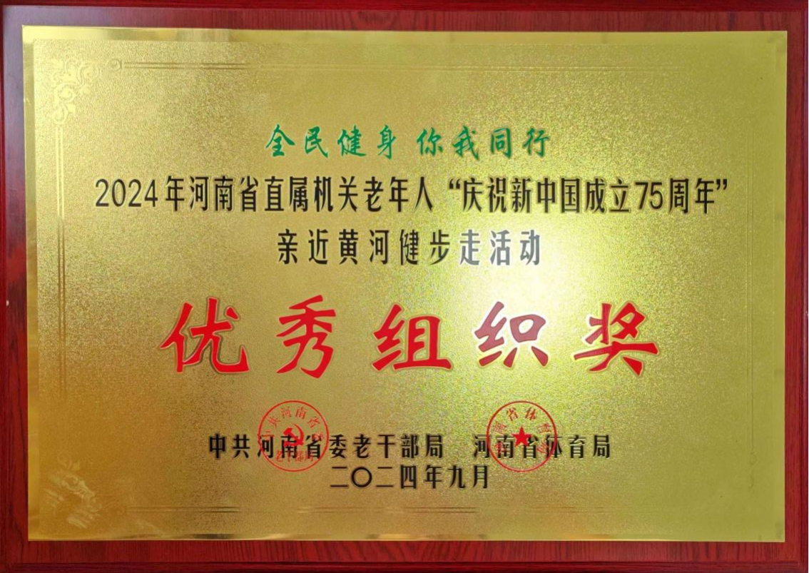 为庆祝中华人民共和国成立75周年,深入贯彻党的二十大和二十届三中全会精神,认真落实“做好离退休干部工作”的要求,丰富我校离退休职工精神文化生活,9月26日,学校组织30余位退休教职工代表参加了中共河南省委老干部局、河南省体育局举办的2024年省直机关老年人“庆祝新中国成立75周年”亲近黄河健步走活动,并荣获“优秀组织奖”。
