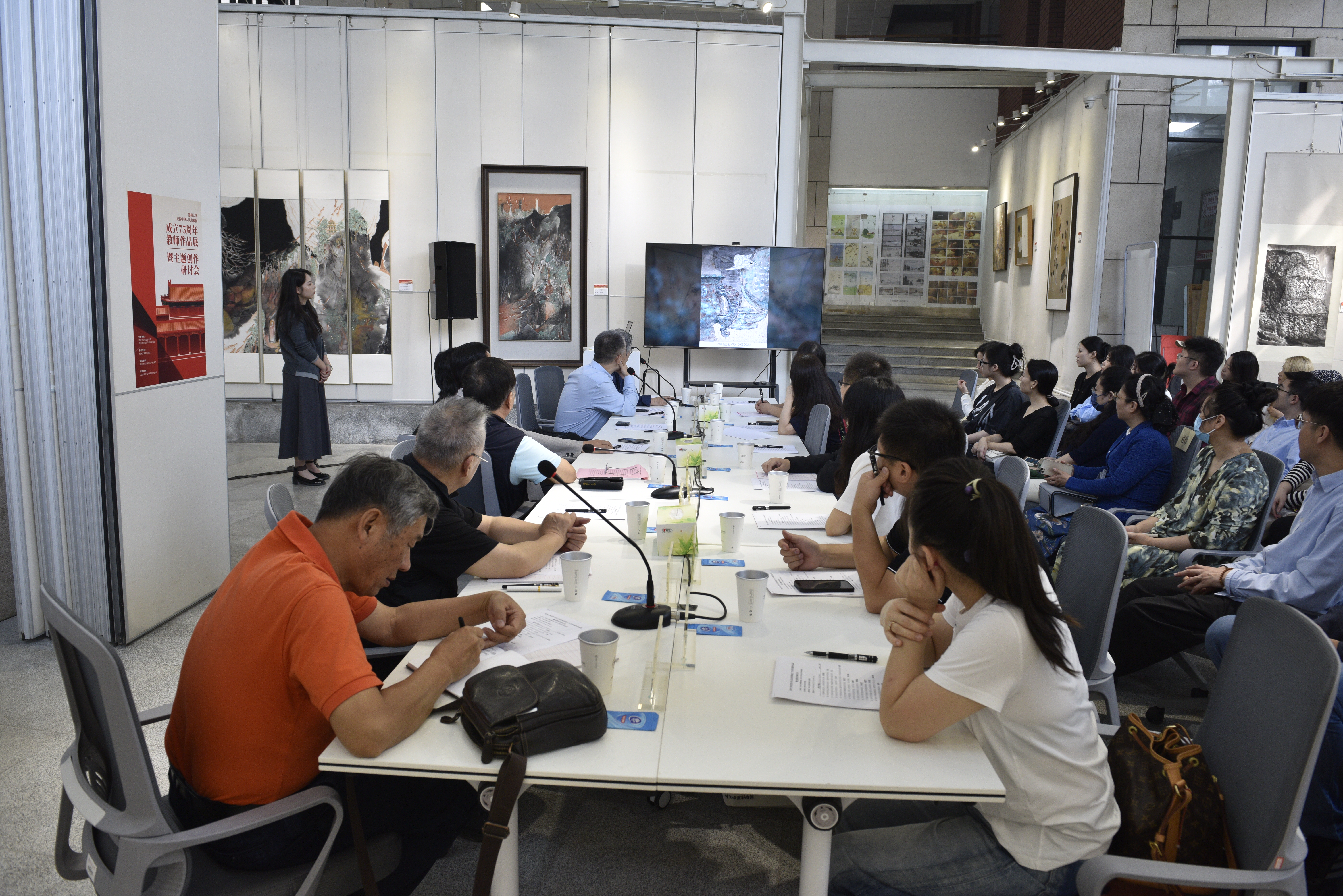 本次活动以主题性创作为切入点,以艺术作品展览与学术研讨的方式献礼新中国75周年华诞。参展的68件作品,无论是笔墨丹青、油彩雕塑,还是视觉设计,都蕴含着美术学院教师对祖国的深情厚谊和无限热爱,都展示着他们精湛的技艺和独特的艺术风格。