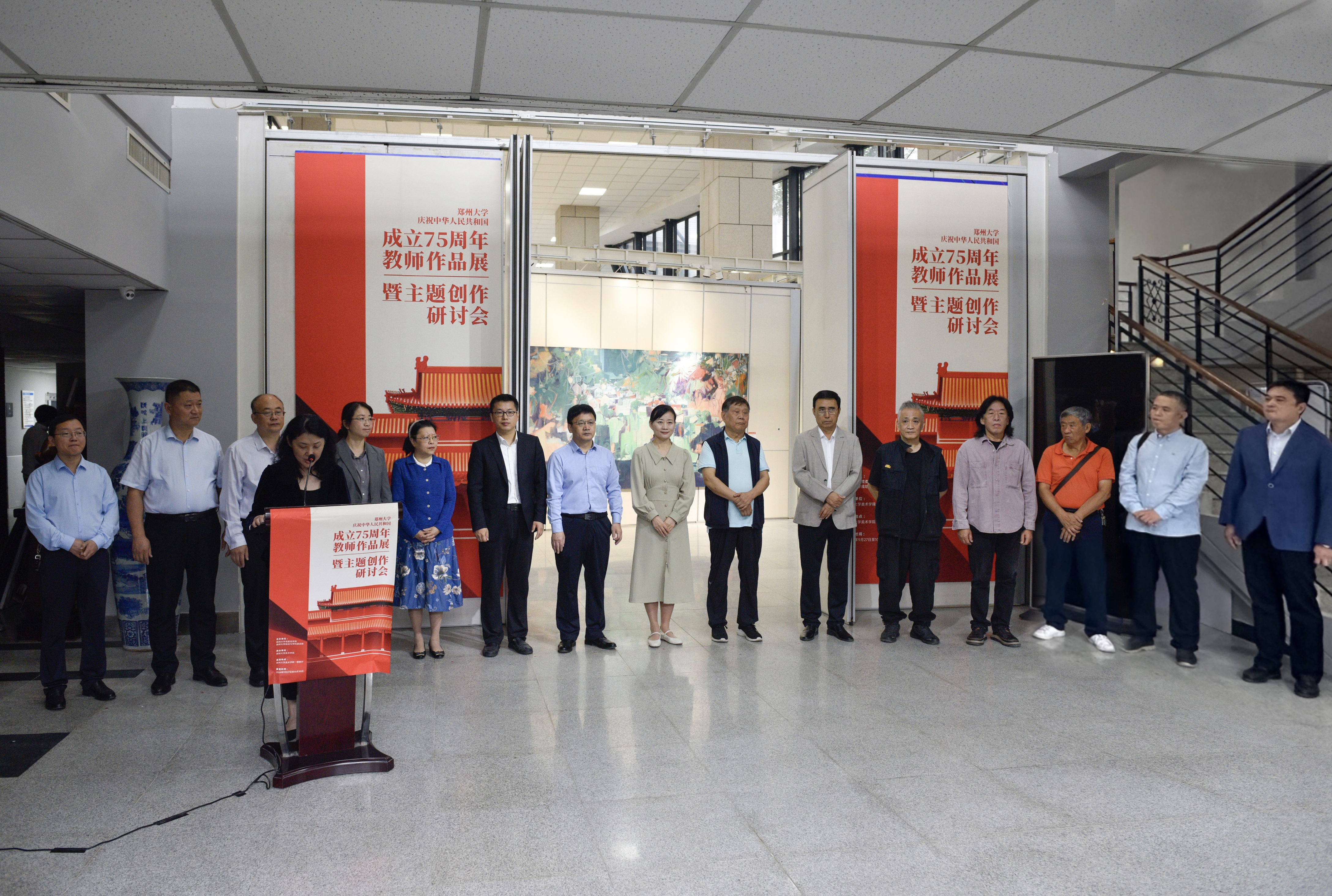 9月27日,由ac米兰官网中文网站党委宣传部、规划与学科建设部主办,美术学院承办的“ac米兰官网中文网站庆祝中华人民共和国成立75周年美术学院教师作品展暨主题创作研讨会”在主校区举行。校党委常委、纪委书记陈曦出席并宣布展览开幕。中国画学会副会长、河南省美协名誉主席马国强,河南省学校艺术教育协会会长、郑州美术学院校长石品,ac米兰官网中文网站党委组织部、党委宣传部、规划与学科建设部及相关部门负责同志参加开幕式。美术学院负责同志主持开幕式。