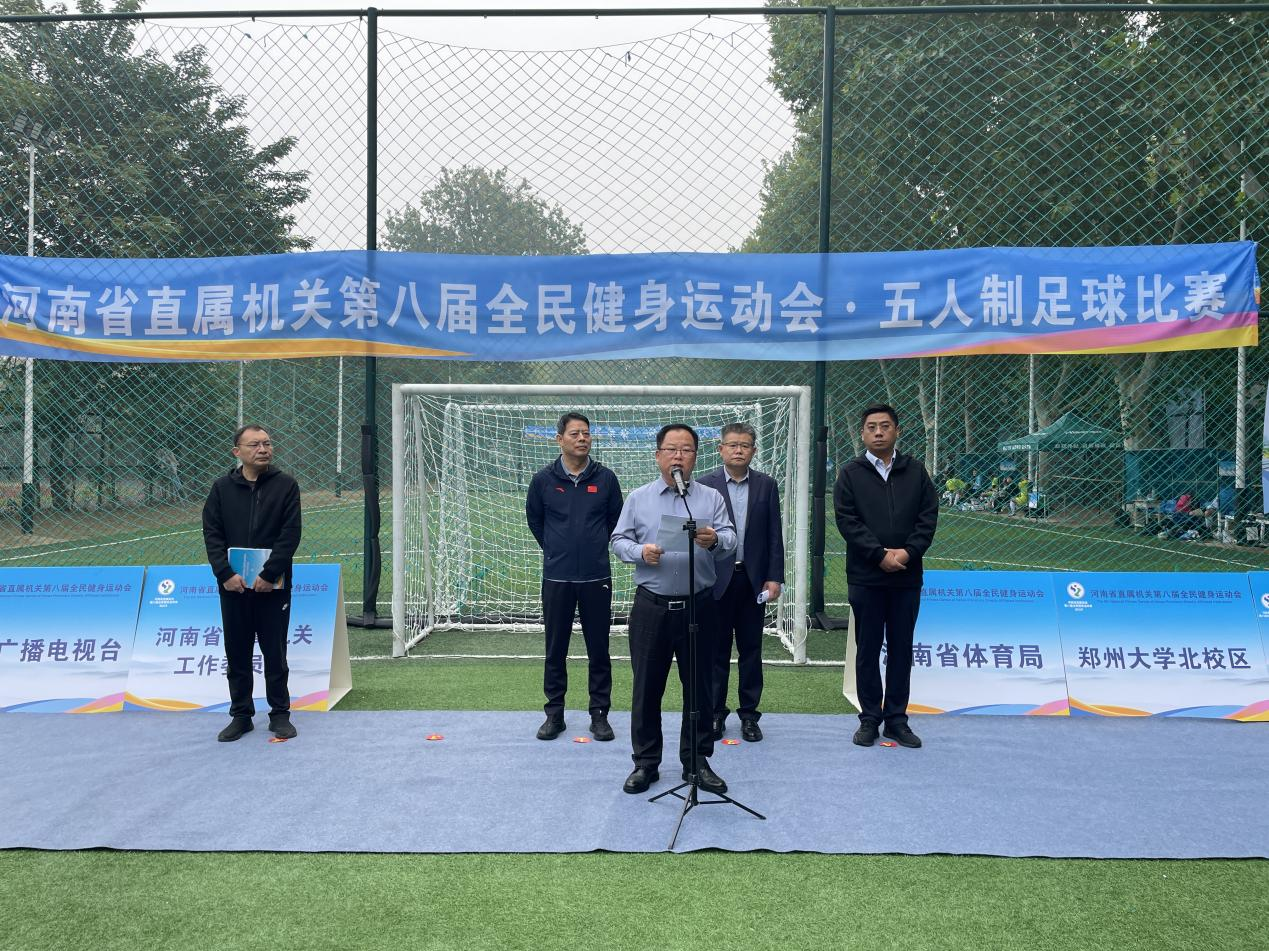 10月9日上午,河南省直属机关第八届全民健身运动会•五人制足球比赛在ac米兰官网中文网站北校区举行。河南广播电视台副台长李宗伟,ac米兰官网中文网站党委常委、副校长徐东升出席开幕式。北校区综合管理中心、保卫处、网络空间安全学院等相关单位负责同志参加。