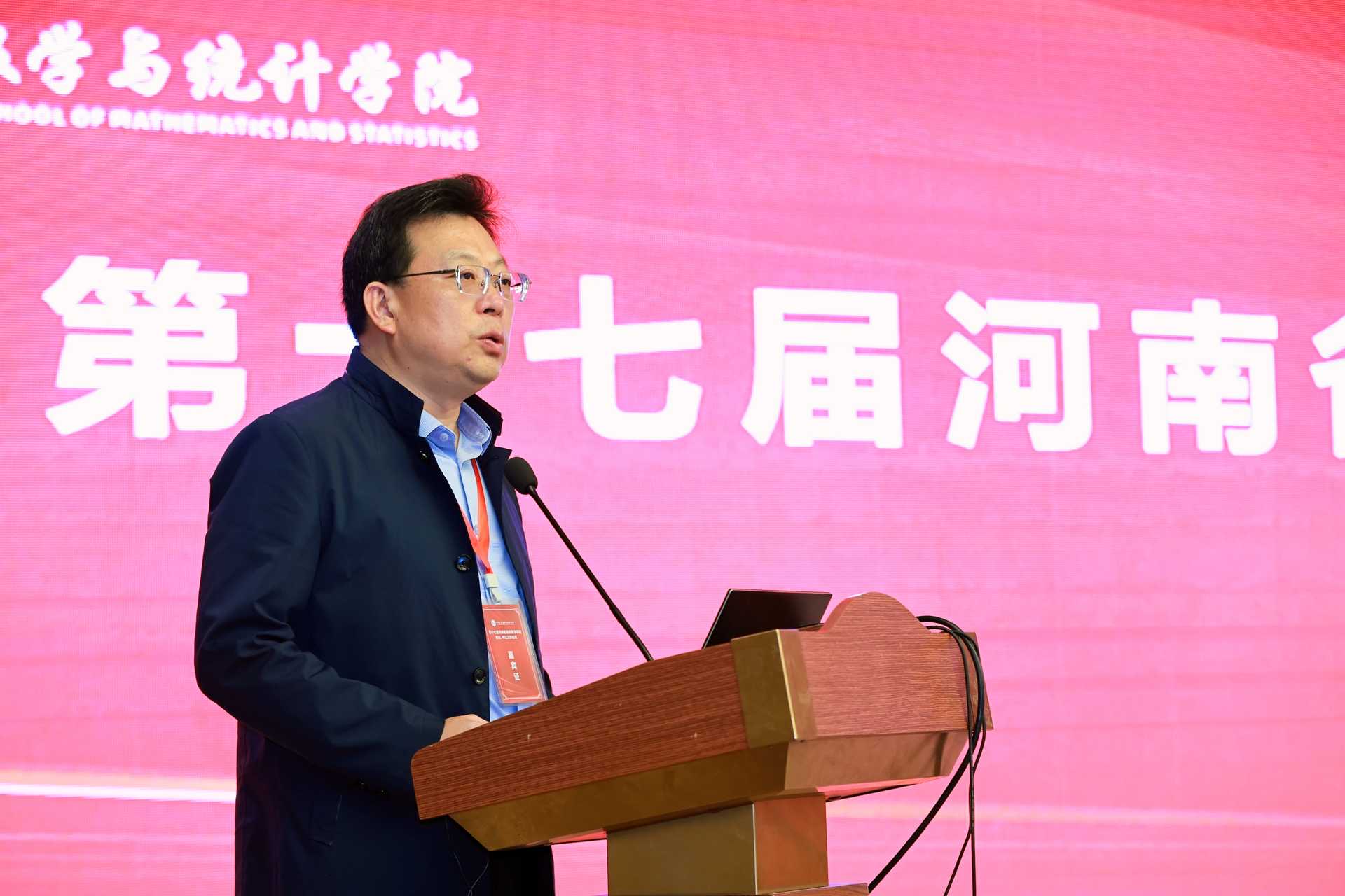 王利国致辞,他代表学校对会议的召开表示祝贺,对与会专家、领导表示热烈的欢迎,并表示此次会议的召开,将为深化河南省高等数学教育内涵式高质量发展做出新的贡献,也为我省各院校之间加深了解、进行高等教育研究提供了一个很好的平台和交流机会。
