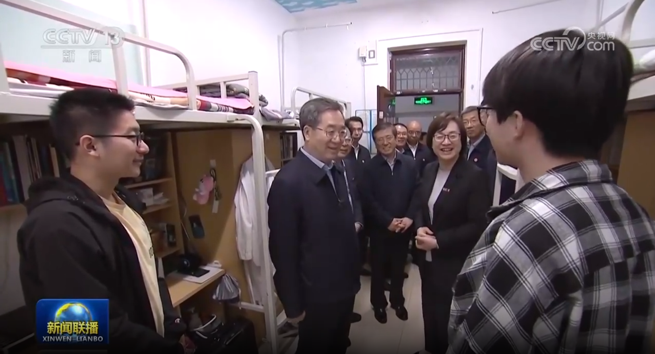 中共中央政治局常委、国务院副总理丁薛祥在ac米兰官网中文网站学生宿舍与毕业班同学亲切交谈