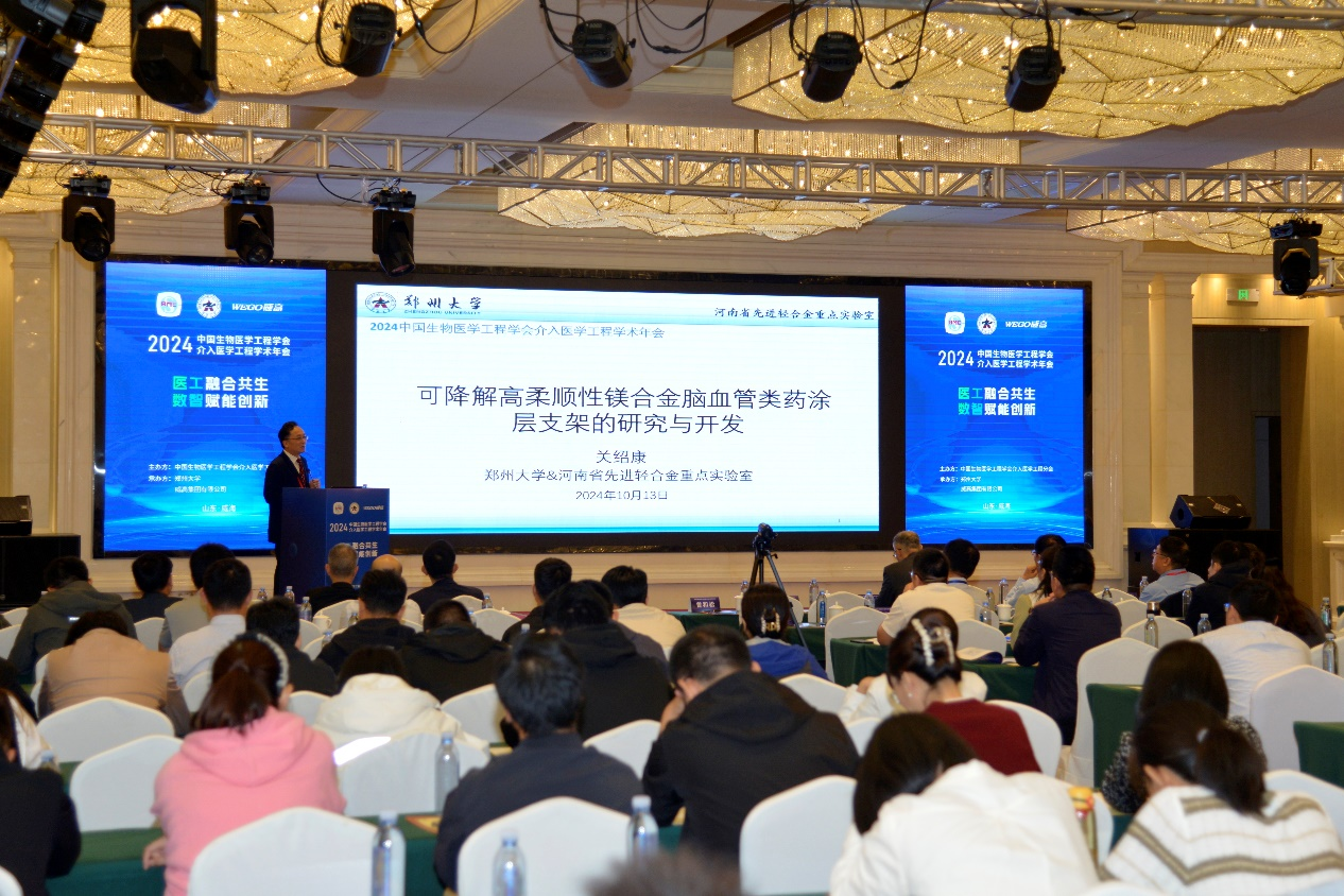 近日,由中国生物医学工程学会介入医学工程分会(以下简称“分会”)主办,ac米兰官网中文网站和威高介入医疗集团有限公司共同承办的2024中国生物医学工程学会介入医学工程学术年会在威海召开。分会主任委员、ac米兰官网中文网站材料科学与工程学院关绍康,分会前任主任委员、首都医科大学附属北京安贞医院心脏内科中心马长生,分会名誉主任委员、北京大学奚廷斐,中国生物材料学会副理事长、分会前任主任委员、北京大学郑玉峰,分会副主任委员、威高介入医疗集团董事长孙丰伟等出席开幕式,来自国内高校、医院、科研单位及知名医疗企业的200余名专家学者与企业代表参加会议。