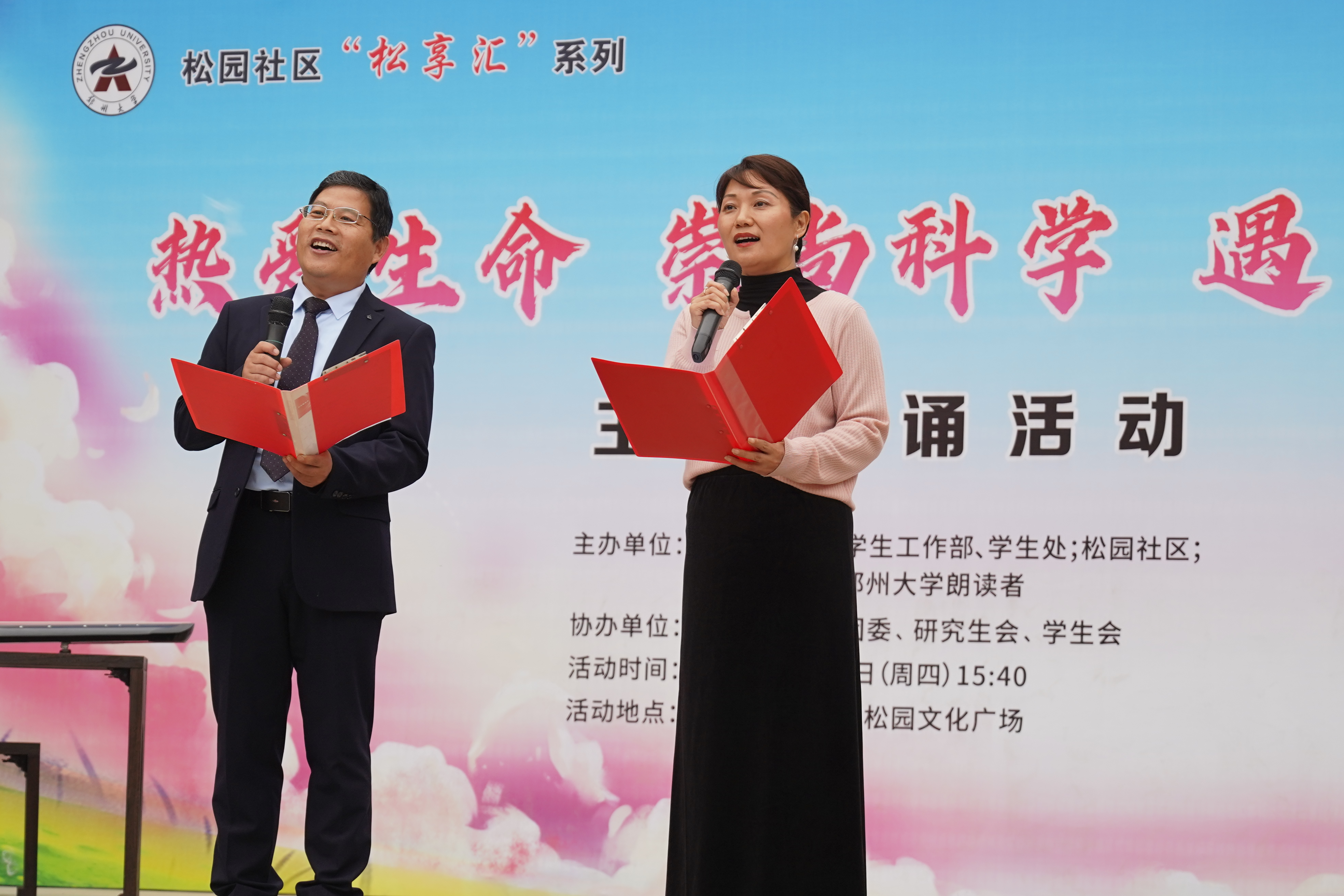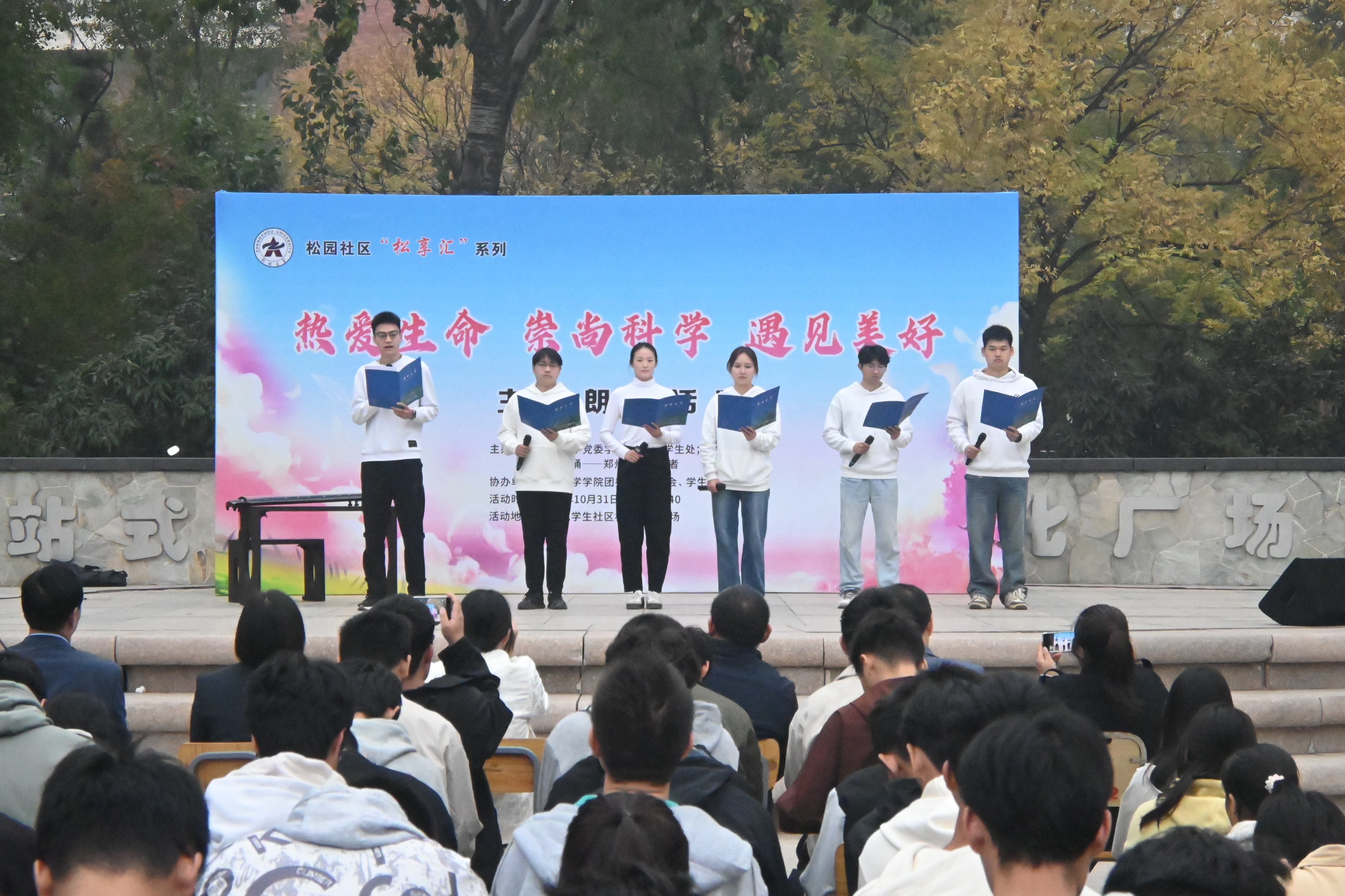 10月31日,由ac米兰官网中文网站党委学生工作部、学生处,松园社区,厚山雅诵——ac米兰官网中文网站朗读者主办,生命科学学院承办的“热爱生命 崇尚科学 遇见美好”主题朗诵活动在“一站式”学生社区松园文化广场举行。校党委宣传部,党委学生工作部、学生处,研究生院、党委研究生工作部,松园社区,校团委,生命科学学院等部门负责同志,以及松园社区近500名学生参加活动。