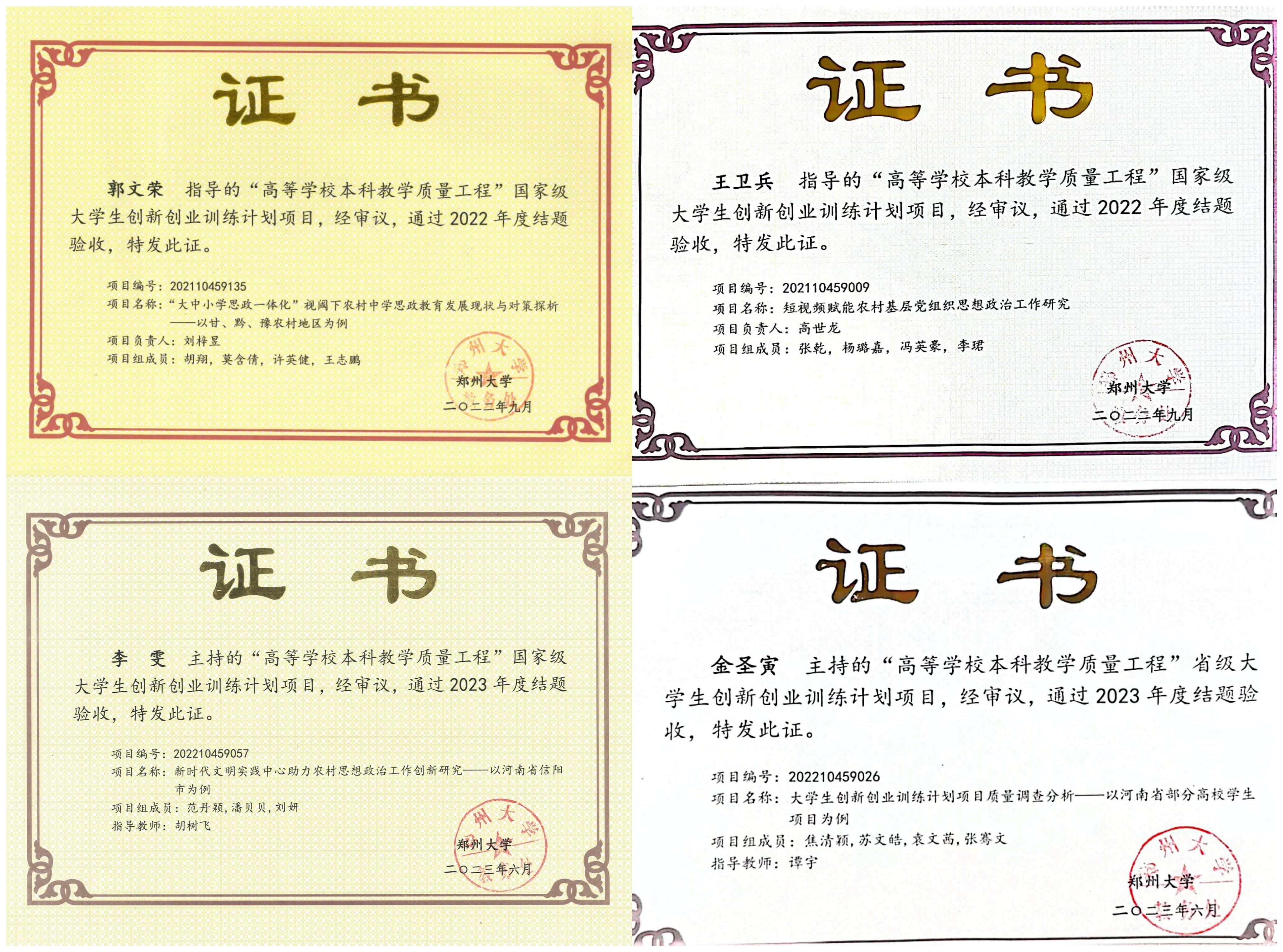 坚持有组织推动马克思主义理论的整体性研究,重点深化党的创新理论的体系化研究、学理化阐释。紧紧围绕推动新时代党的创新理论入脑入心,深入研究思政课教学重点难点问题和教学方法改革创新。现有教育部高校辅导员培训和研修基地(国家级)和河南省高校辅导员培训和研修基地,设有河南省高端智库——河南省意识形态安全研究中心、ac米兰官网中文网站社会主义核心价值观研究中心、ac米兰官网中文网站思想政治教育研究室、国家领土主权与海洋权益协同创新中心ac米兰官网中文网站分中心、ac米兰官网中文网站越南研究所、ac米兰官网中文网站马克思主义研究院、党的建设研究中心等研究机构。在高水平科研平台建设和“顶天立地”的科研教研成果产出方面取得丰硕成绩。近年来,先后获批国家级科研项目40余项,其中国家社科基金重大项目6项、重点项目2项,马工程特别委托项目1项;高层批示采纳10余项;在CSSCI期刊发表论文100余篇,其中在权威刊物发表论文20余篇,《新华文摘》转载3篇,人大复印资料全文转载12篇,《高等学校文科学术文摘》全文转载1篇,《中国社会科学文摘》长摘1篇;出版权威学术专著10余部;获得教育部高校科研优秀成果奖等省部级以上奖励10余项。