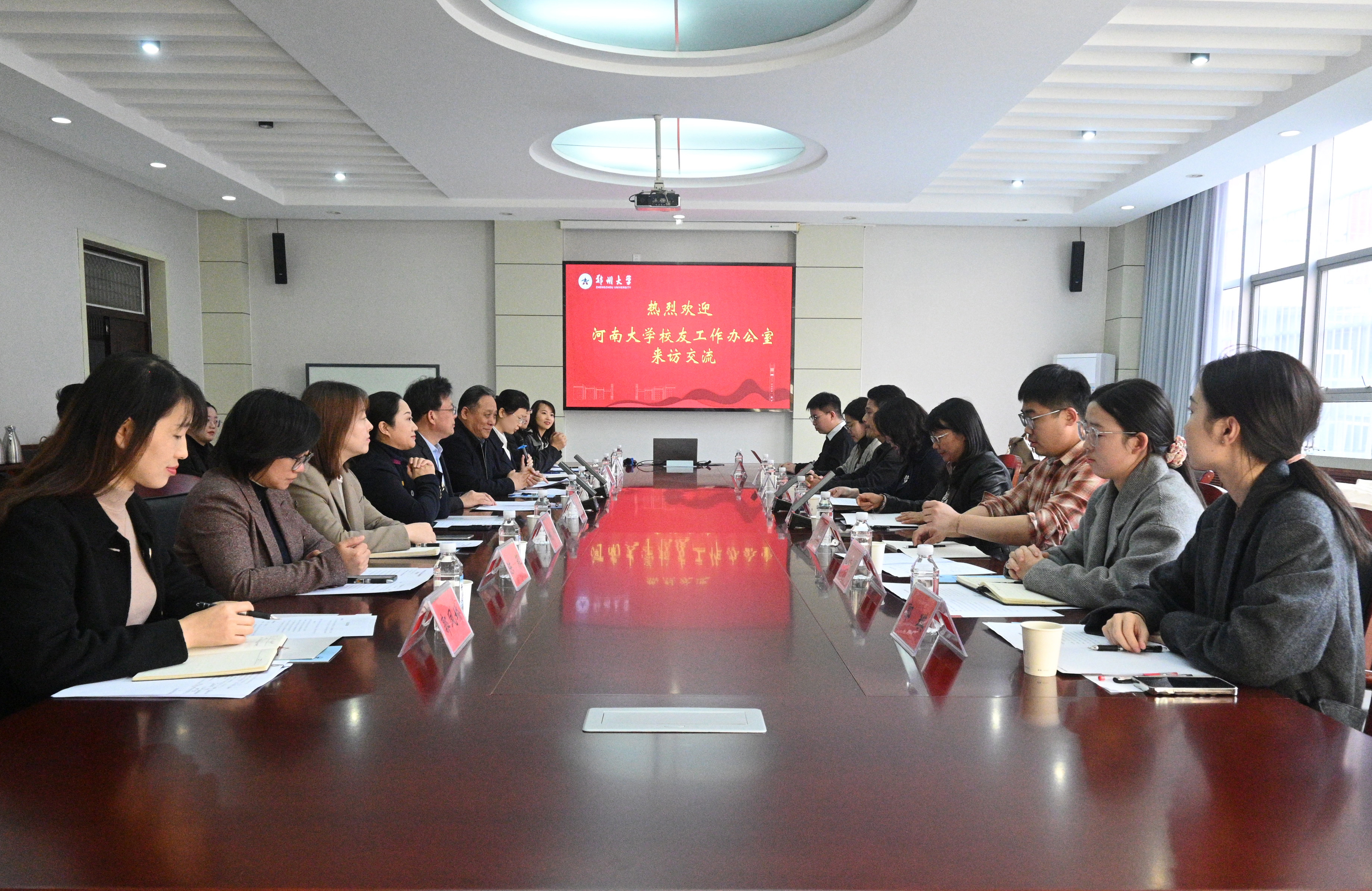 座谈会上,双方围绕校友会运行机制、校友组织拓展、信息化建设等进行了探讨。会后,河南大学校友工作办公室一行参观了我校校友总会办公室和校友文化驿站——眉湖小屋。