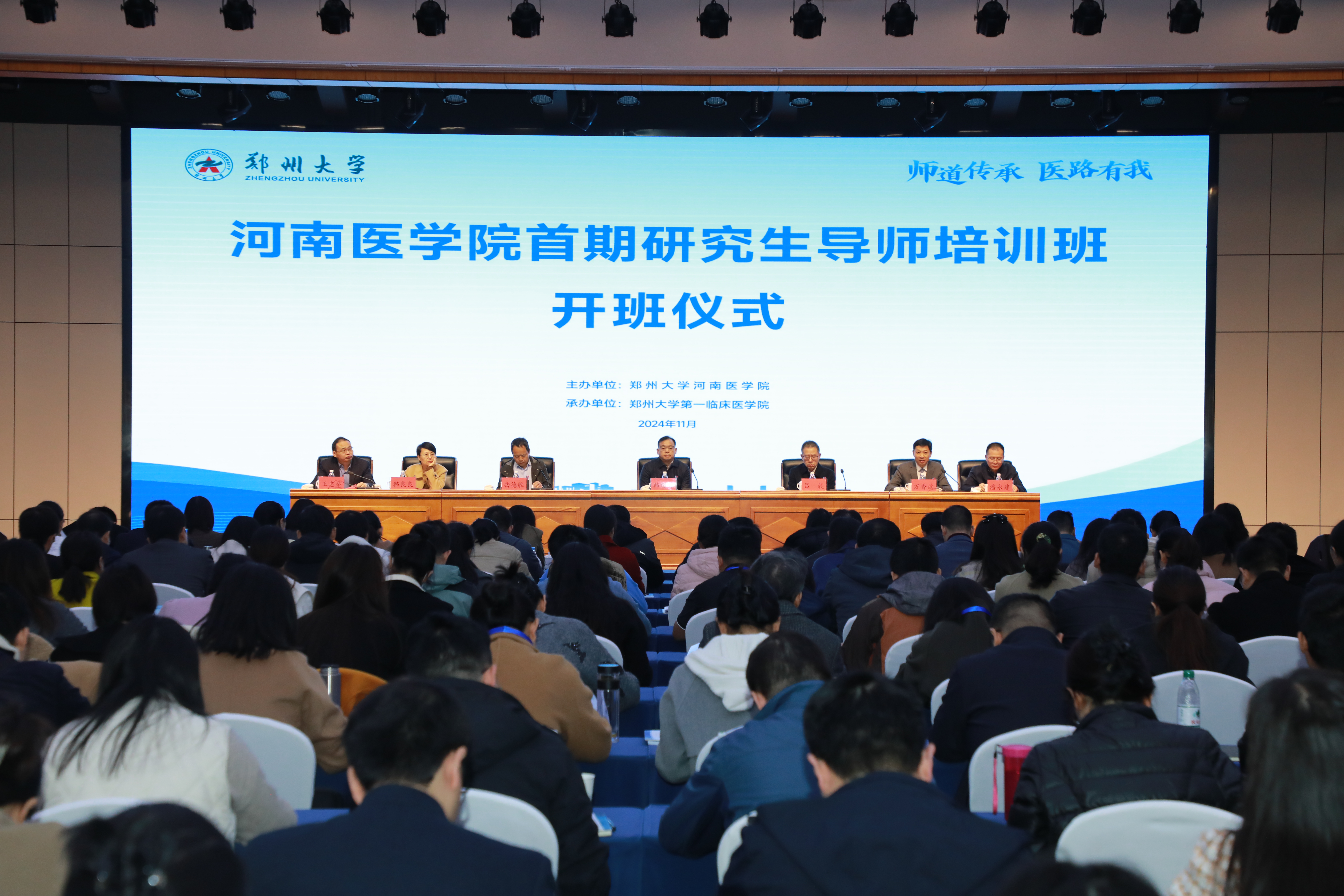 韩国河讲话。他指出,加强研究生导师培训是帮助导师提高思想认识、拓宽视野、提升教学科研能力的重要途径。要通过学习,深入贯彻党的二十届三中全会和全国教育大会精神,全面落实习近平总书记关于研究生教育工作的重要指示和全国研究生教育会议精神,进一步推进临床医学一流学科建设和人才培养各项工作,不断推动各学院及附属医院高质量发展。他强调,全体学员要严守培训纪律、认真研讨交流、加强实践运用,为培养更多优秀的医学研究生、推动河南医学院高质量发展、推进学校一流大学建设做出新的更大的贡献。